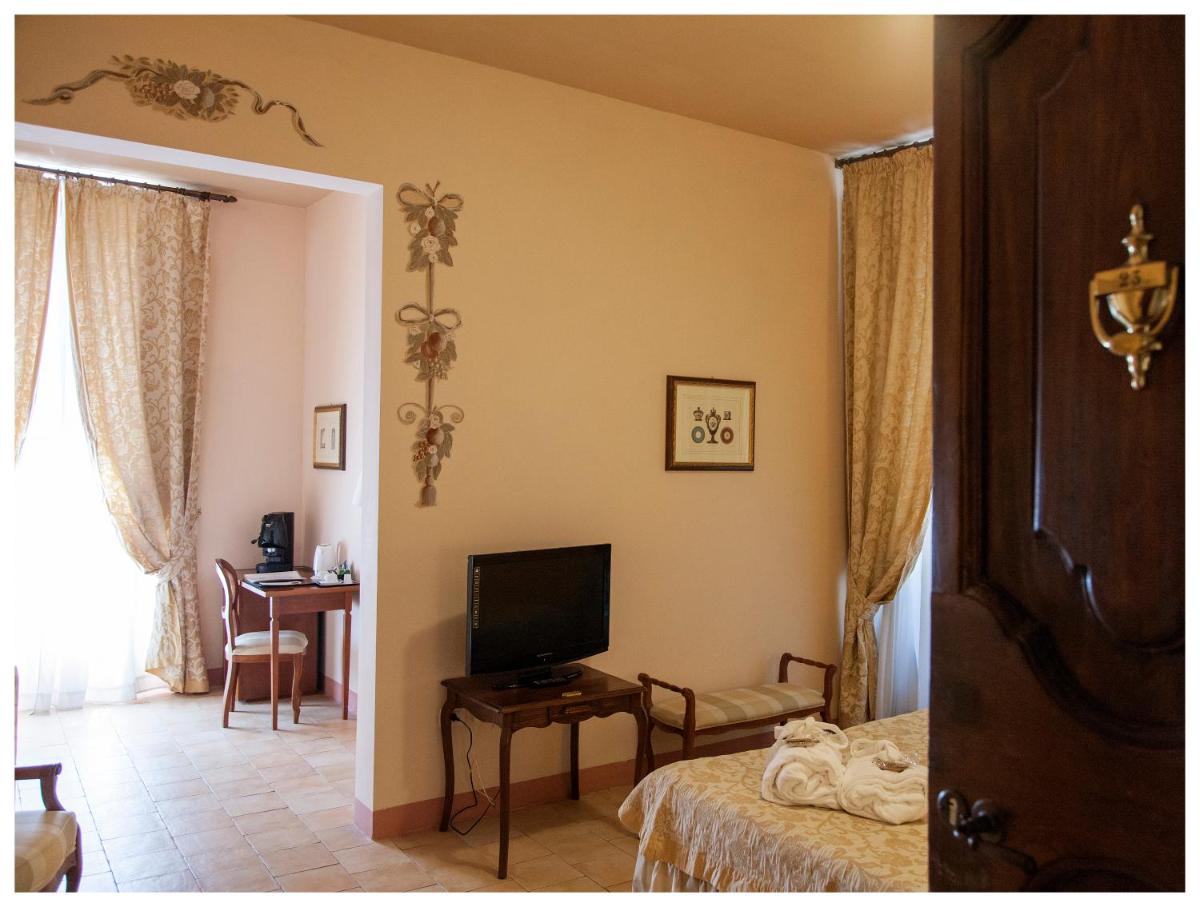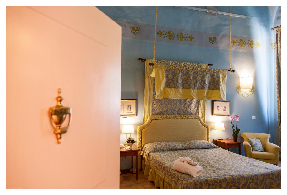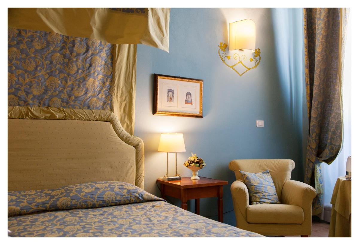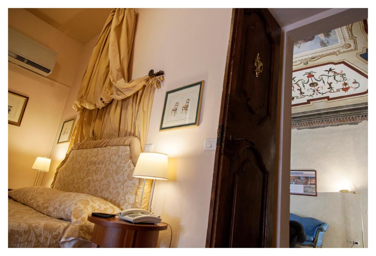 Die Zimmer und Suiten zeichnen sich durch einen klassischen und raffinierten Stil aus. Viele weisen originale Details wie Kassettendecken und Terrakottaböden auf. Die Einrichtung ist exquisit und sorgfältig ausgewählt, um maximalen Komfort und eine Atmosphäre der Ruhe zu bieten, trotz der zentralen Lage. Jedes Detail trägt zu einem einzigartigen und immersiven historischen Aufenthaltserlebnis bei.