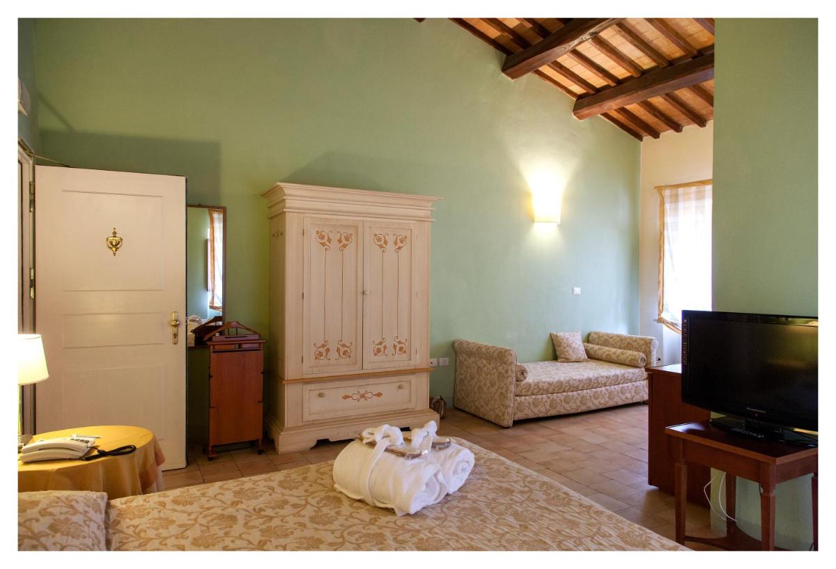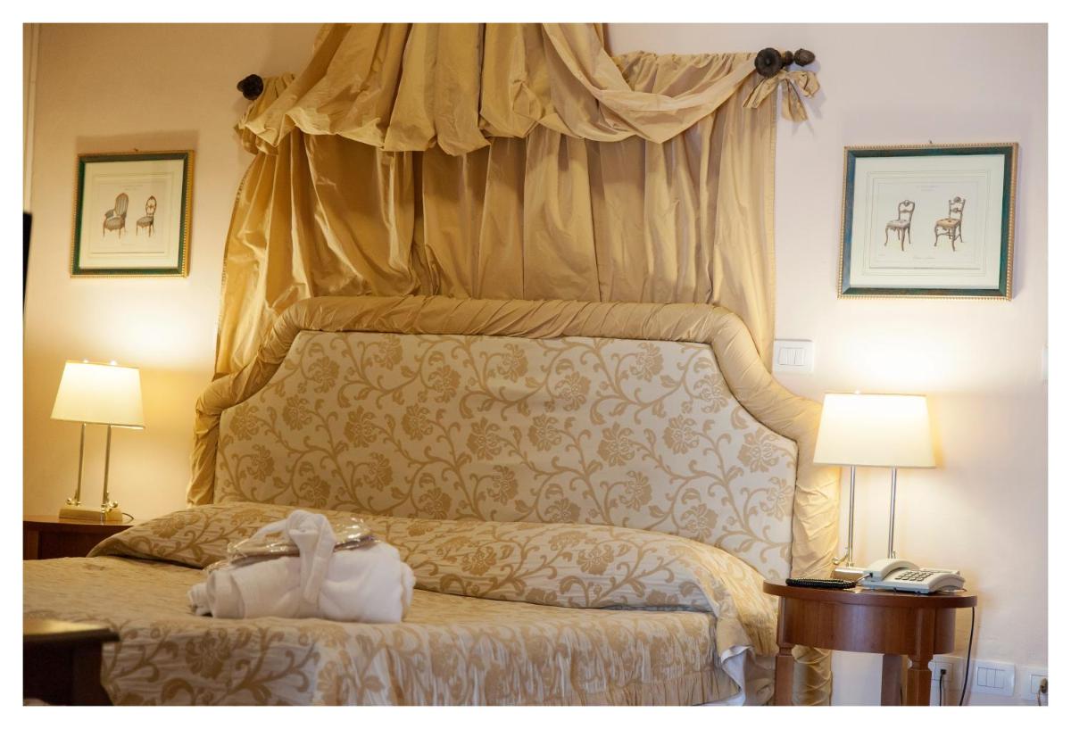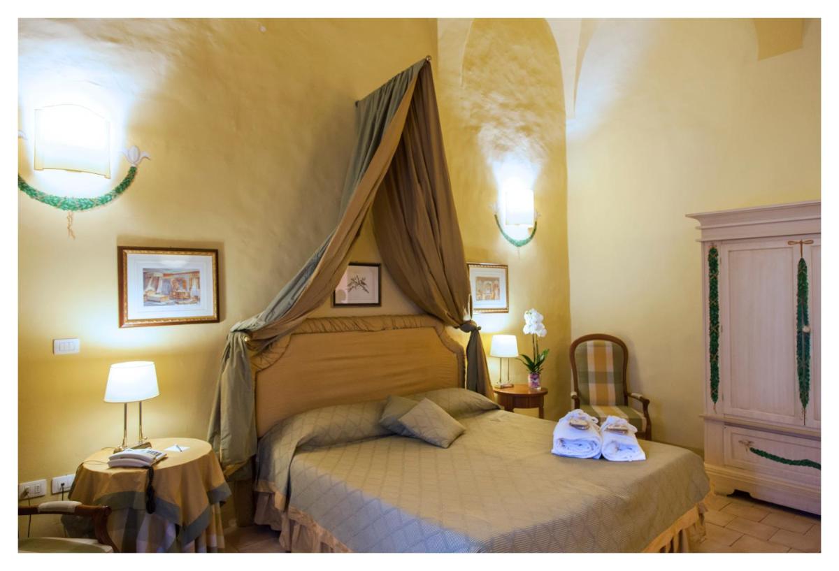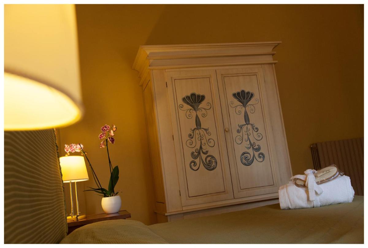 Die Zimmer und Suiten zeichnen sich durch einen klassischen und raffinierten Stil aus. Viele weisen originale Details wie Kassettendecken und Terrakottaböden auf. Die Einrichtung ist exquisit und sorgfältig ausgewählt, um maximalen Komfort und eine Atmosphäre der Ruhe zu bieten, trotz der zentralen Lage. Jedes Detail trägt zu einem einzigartigen und immersiven historischen Aufenthaltserlebnis bei.