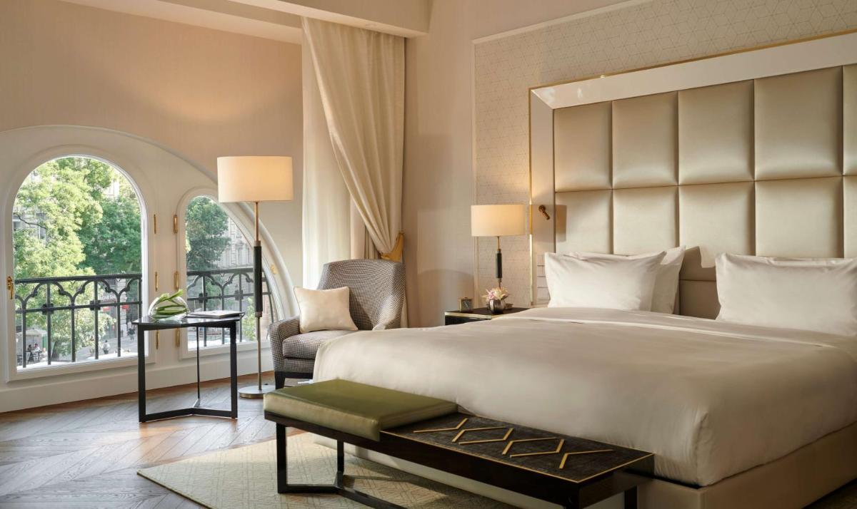 Das Hotel ist berühmt für seine 'Pariser Passage' (Párisi Udvar), eine überdachte Einkaufspassage mit einer Glaskuppel und schmiedeeisernen Decke, geschmückt mit Zsolnay-Keramiken. Die Innenräume zelebrieren den ungarischen Secessionsstil, mit Mosaik- und Buntglasdetails, die eine königliche und unvergessliche Atmosphäre für die Gäste schaffen.