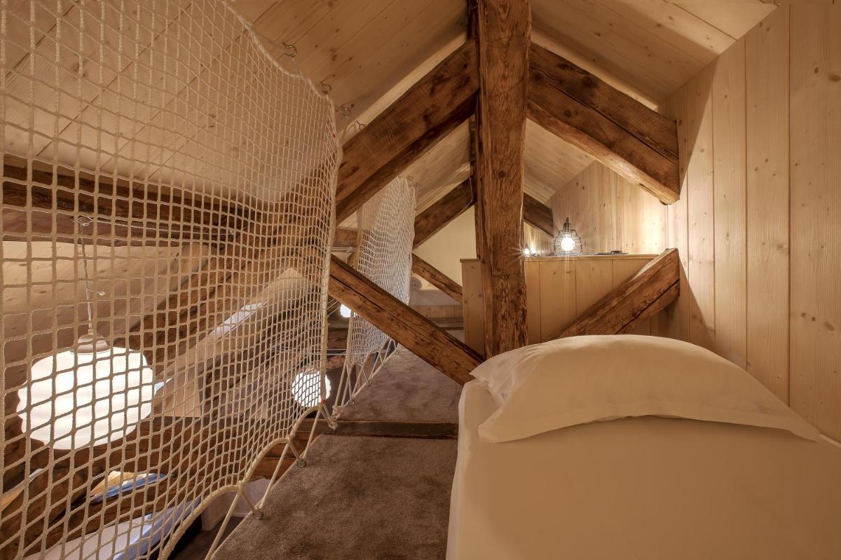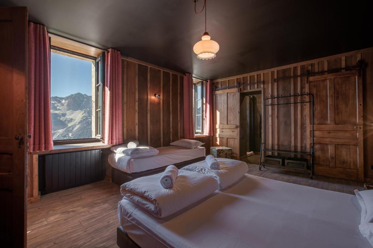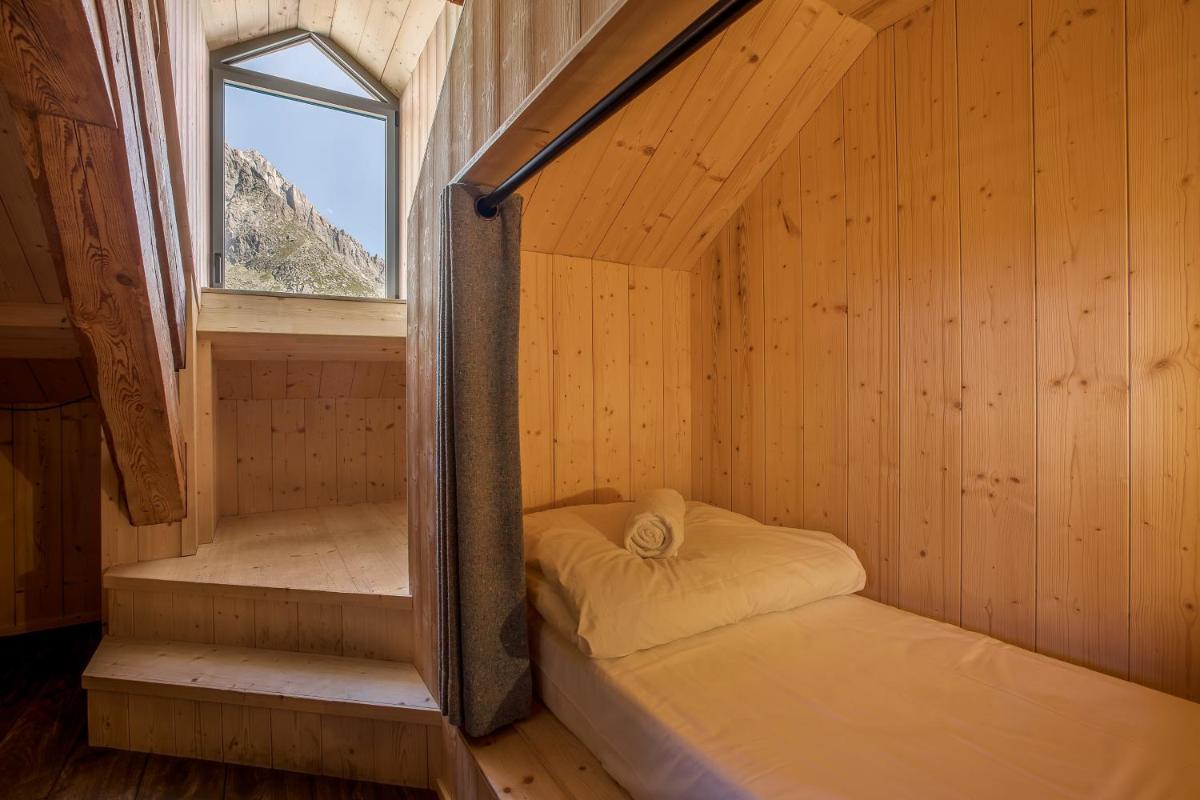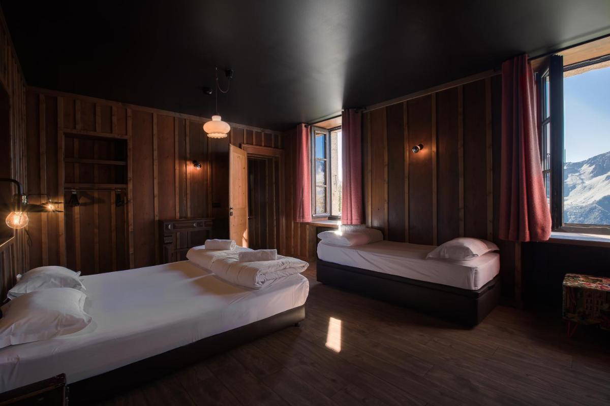 Das Gebäude aus dem 19. Jahrhundert wurde sorgfältig renoviert, um den authentischen Charme des alpinen Refugiums zu bewahren und rustikale und historische Elemente mit modernem Komfort zu kombinieren. Die Zimmer und Gemeinschaftsbereiche bieten eine gemütliche und abenteuerliche Atmosphäre, in perfekter Harmonie mit der Hochgebirgsumgebung.