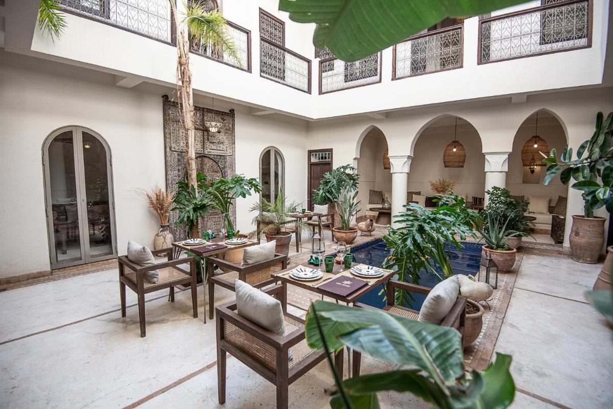 Das Riad Farhan ist ein luxuriöses Boutique-Riad in privilegierter Lage in der Medina von Marrakesch, das eine Atmosphäre der Ruhe und Raffinesse nur wenige Schritte von den Souks und dem berühmten Jemaa el-Fna-Platz entfernt bietet. Dieses Riad ist bekannt für sein elegantes Design, das traditionelle marokkanische Architektur mit modernen Akzenten verbindet und eine intime Umgebung auf hohem Niveau schafft.