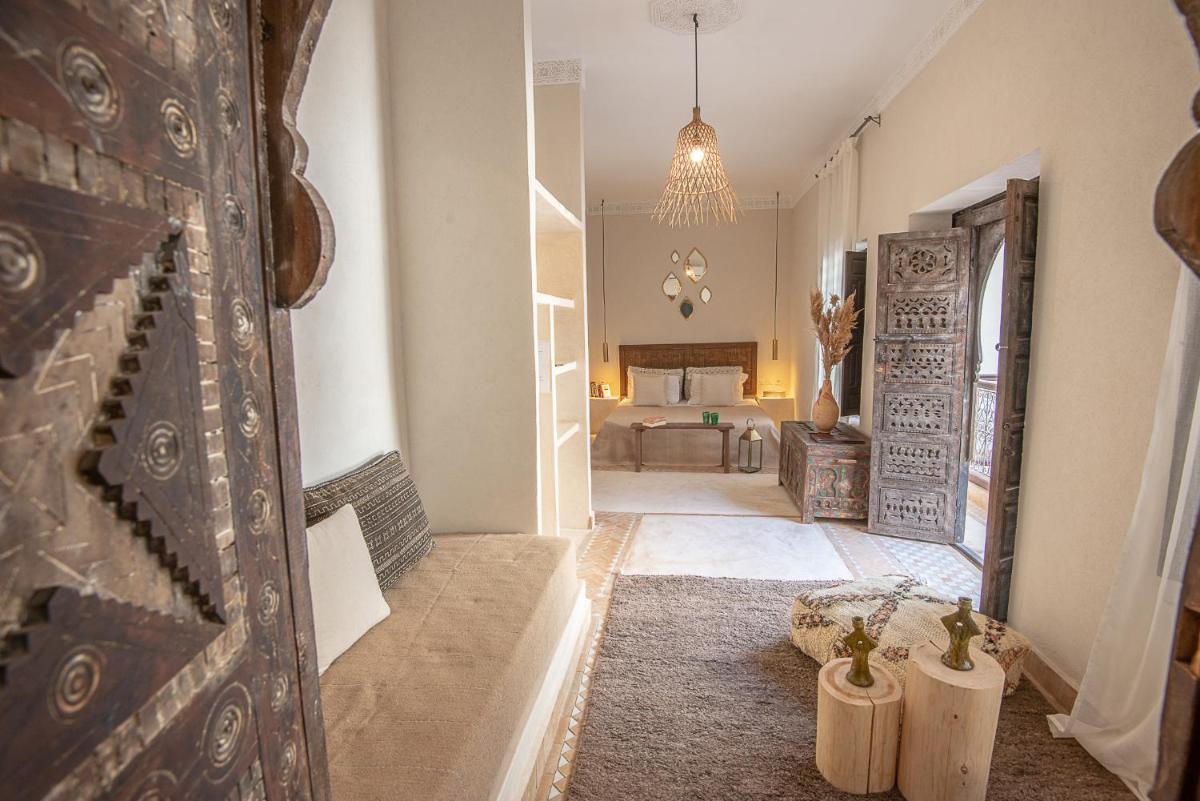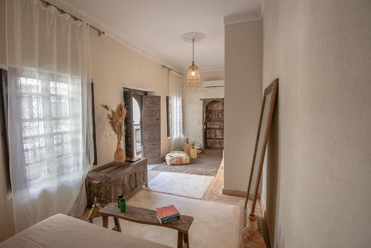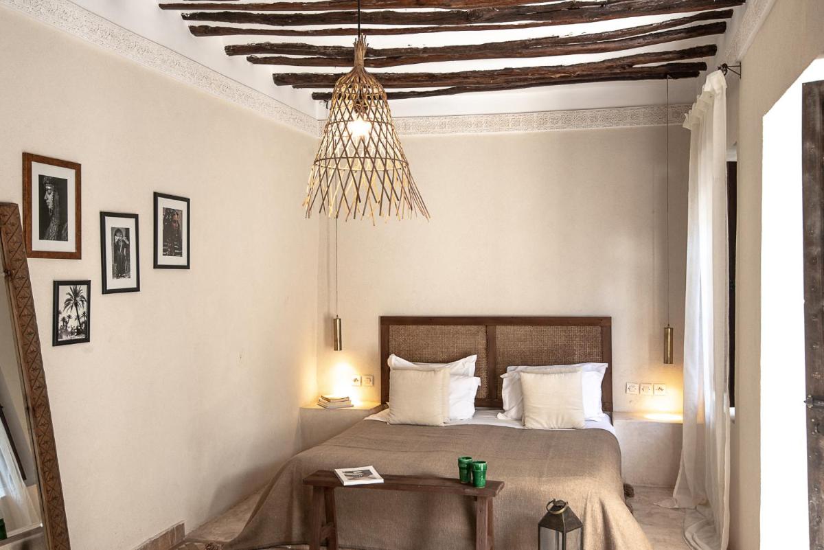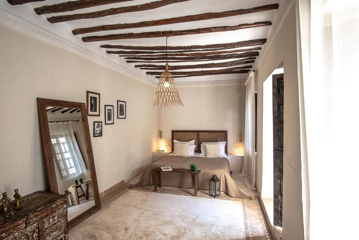 Die Zimmer sind individuell gestaltet, jedes mit einem eigenen unverwechselbaren Charakter, aber alle mit luxuriöser Bettwäsche, privaten Bädern und Dekorationen, die das marokkanische Handwerk hervorheben. Die Atmosphäre ist von gelassener Intimität und bietet einen wahren Zufluchtsort vor dem äußeren Trubel, mit allem notwendigen Komfort für einen Aufenthalt des reinen Wohlbefindens.
