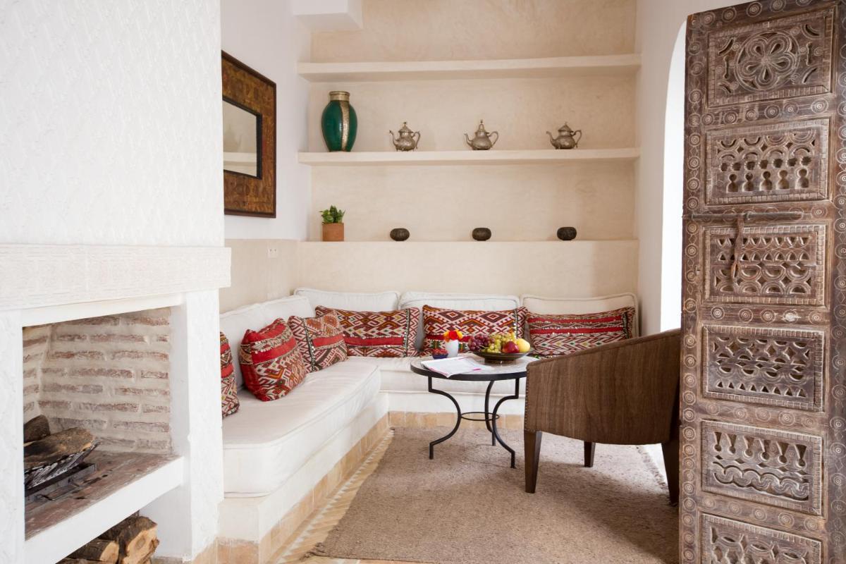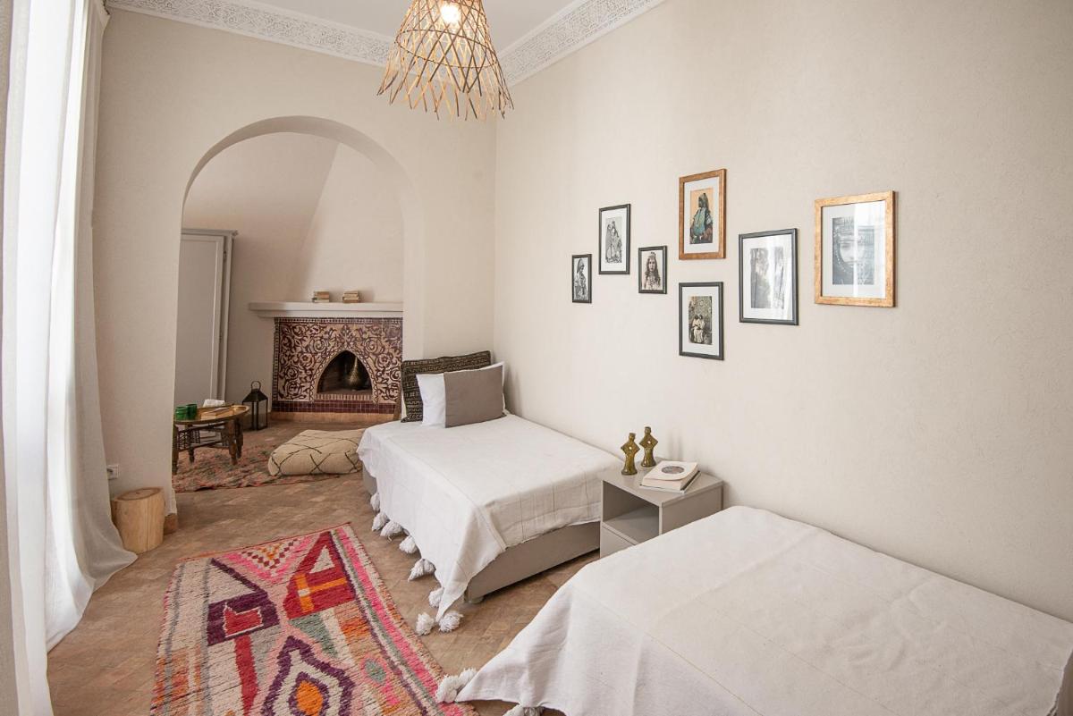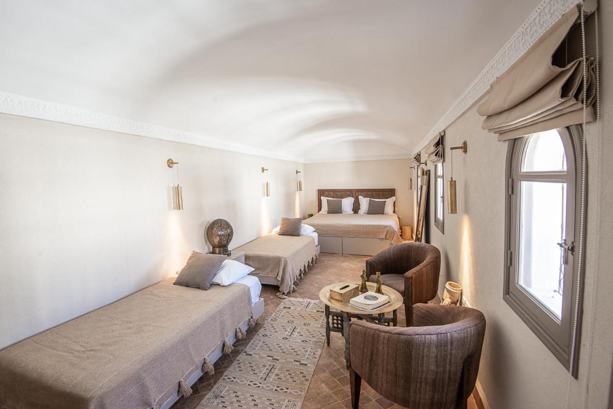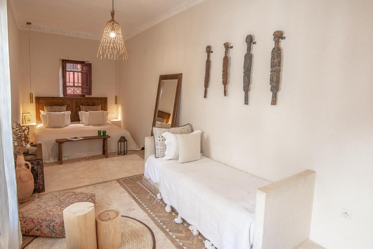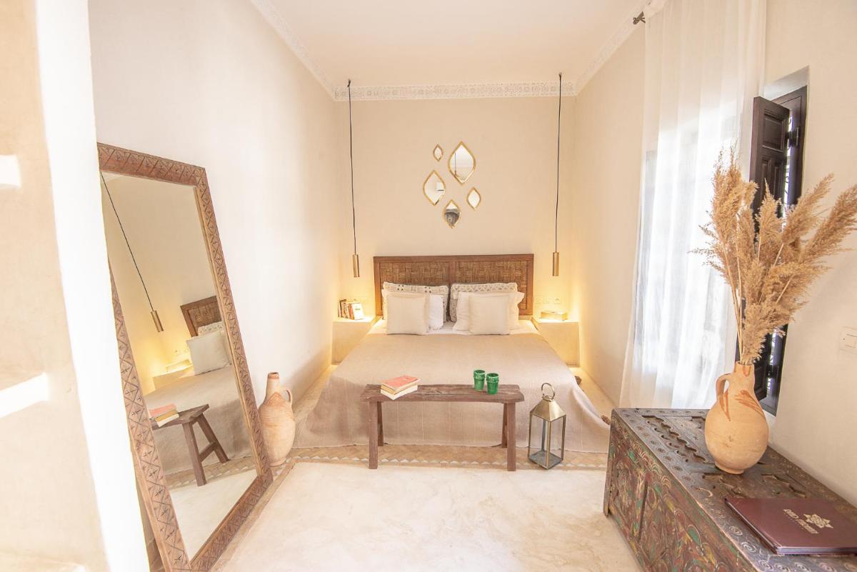 Die Zimmer sind individuell gestaltet, jedes mit einem eigenen unverwechselbaren Charakter, aber alle mit luxuriöser Bettwäsche, privaten Bädern und Dekorationen, die das marokkanische Handwerk hervorheben. Die Atmosphäre ist von gelassener Intimität und bietet einen wahren Zufluchtsort vor dem äußeren Trubel, mit allem notwendigen Komfort für einen Aufenthalt des reinen Wohlbefindens.