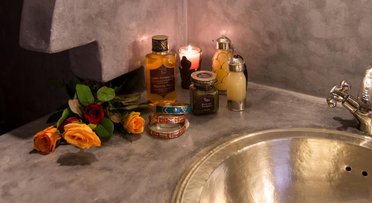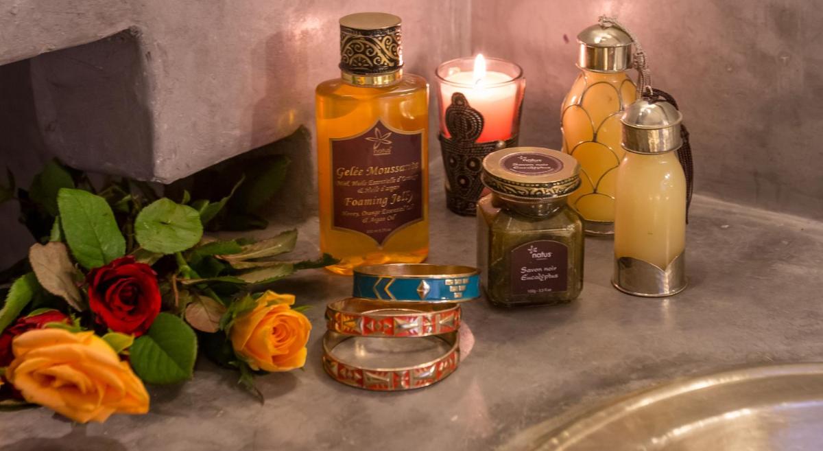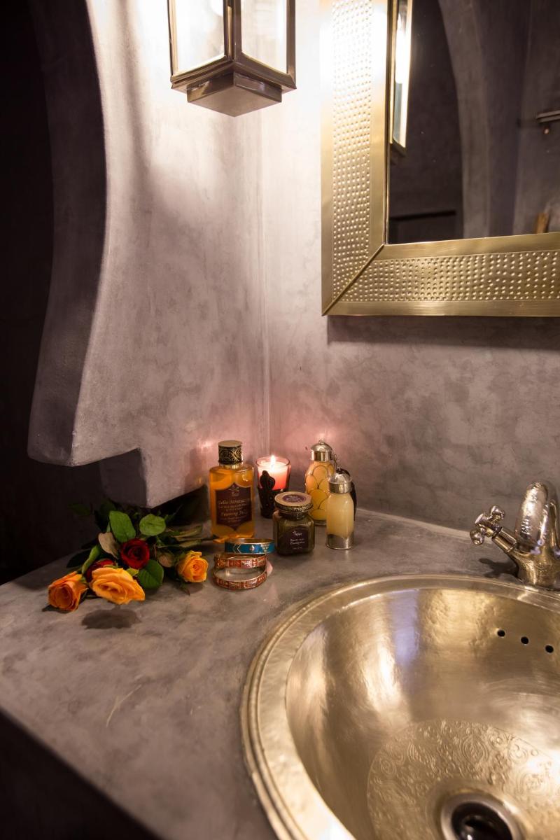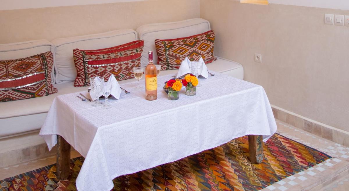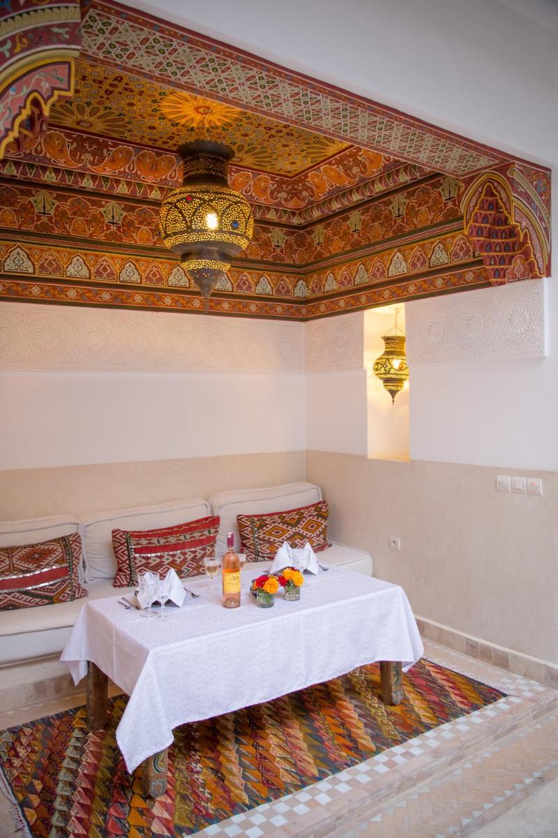 Das Herz des Riads ist sein prächtiger zentraler Patio, eine Oase der Kühle mit üppigen Pflanzen und einem einladenden Tauchbecken, in dem sich die Gäste nach einem Erkundungstag entspannen können. Die Liebe zum Detail in der Einrichtung, die feine Stoffe und handwerkliche Laternen umfasst, unterstreicht das Engagement für eine warme und persönliche Gastfreundschaft.