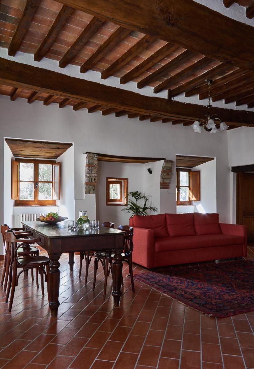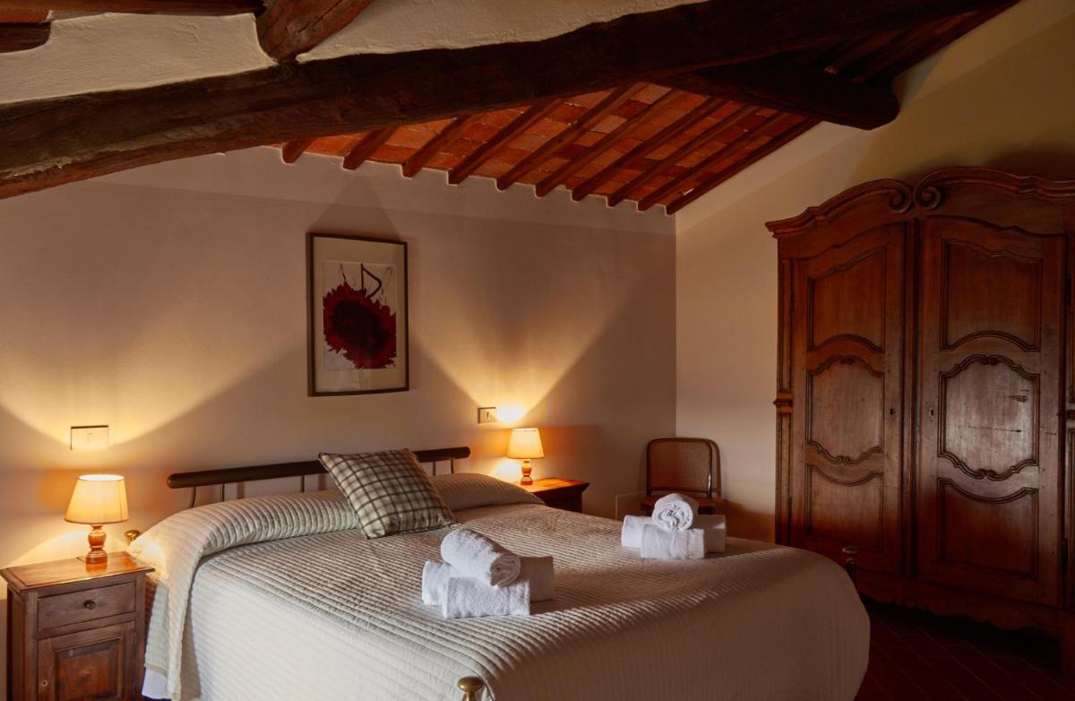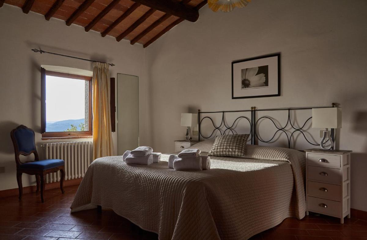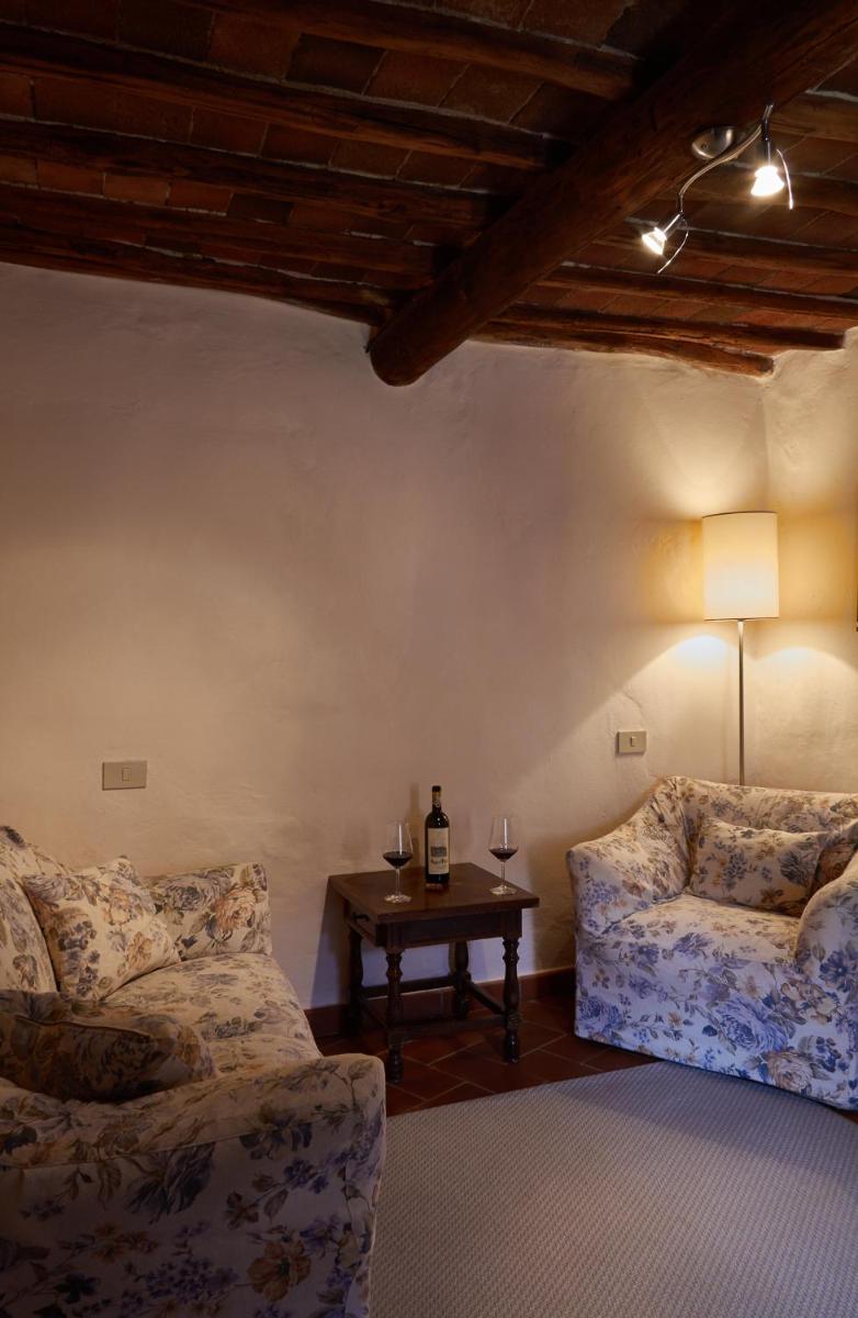 Die Gastfreundschaft gliedert sich in elegante Zimmer (Standard und Superior, viele mit Hydromassage-Dusche) und geräumige, unabhängige Apartments, ideal für längere Aufenthalte, ausgestattet mit einer Kochnische/ausgestatteter Küche. Alle Unterkünfte sind im typisch toskanischen Stil mit freiliegenden Holzbalken, antiken Möbeln und Komfort wie Klimaanlage (in den meisten Einheiten verfügbar), Minibar und Kostenlosem Wi-Fi eingerichtet. Entspannung garantiert der herrliche panoramische Außenpool, der saisonal geöffnet ist und einen atemberaubenden Blick auf die Chianti-Hügel bietet.