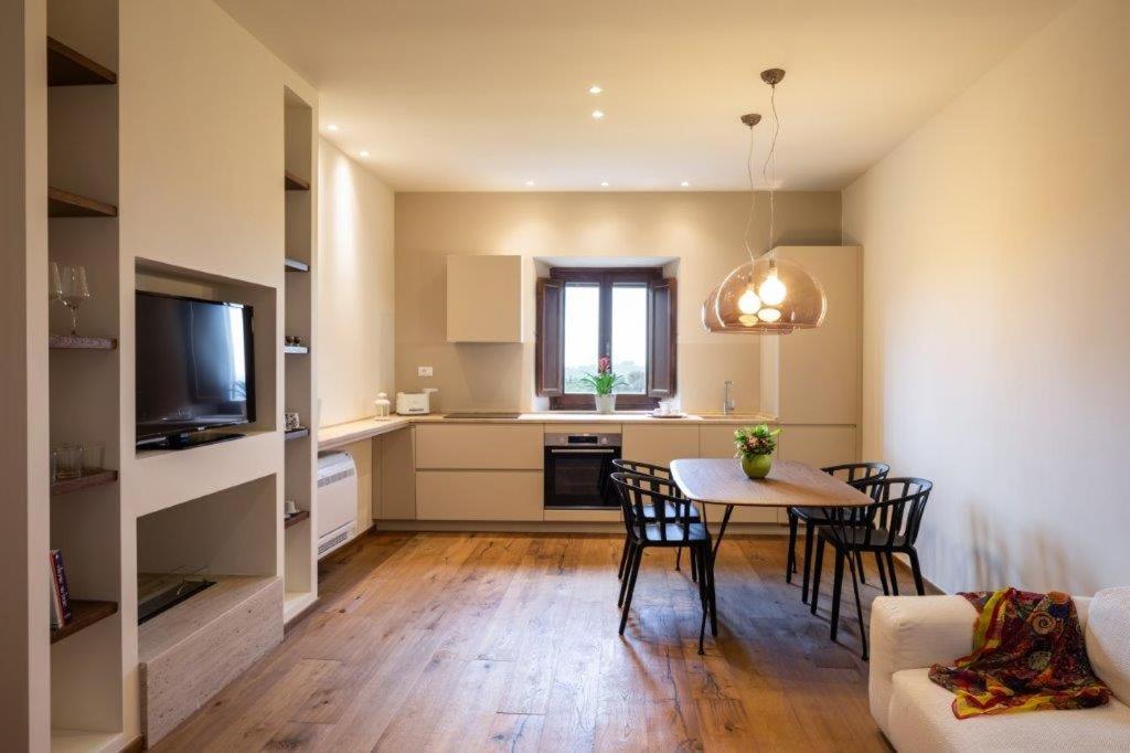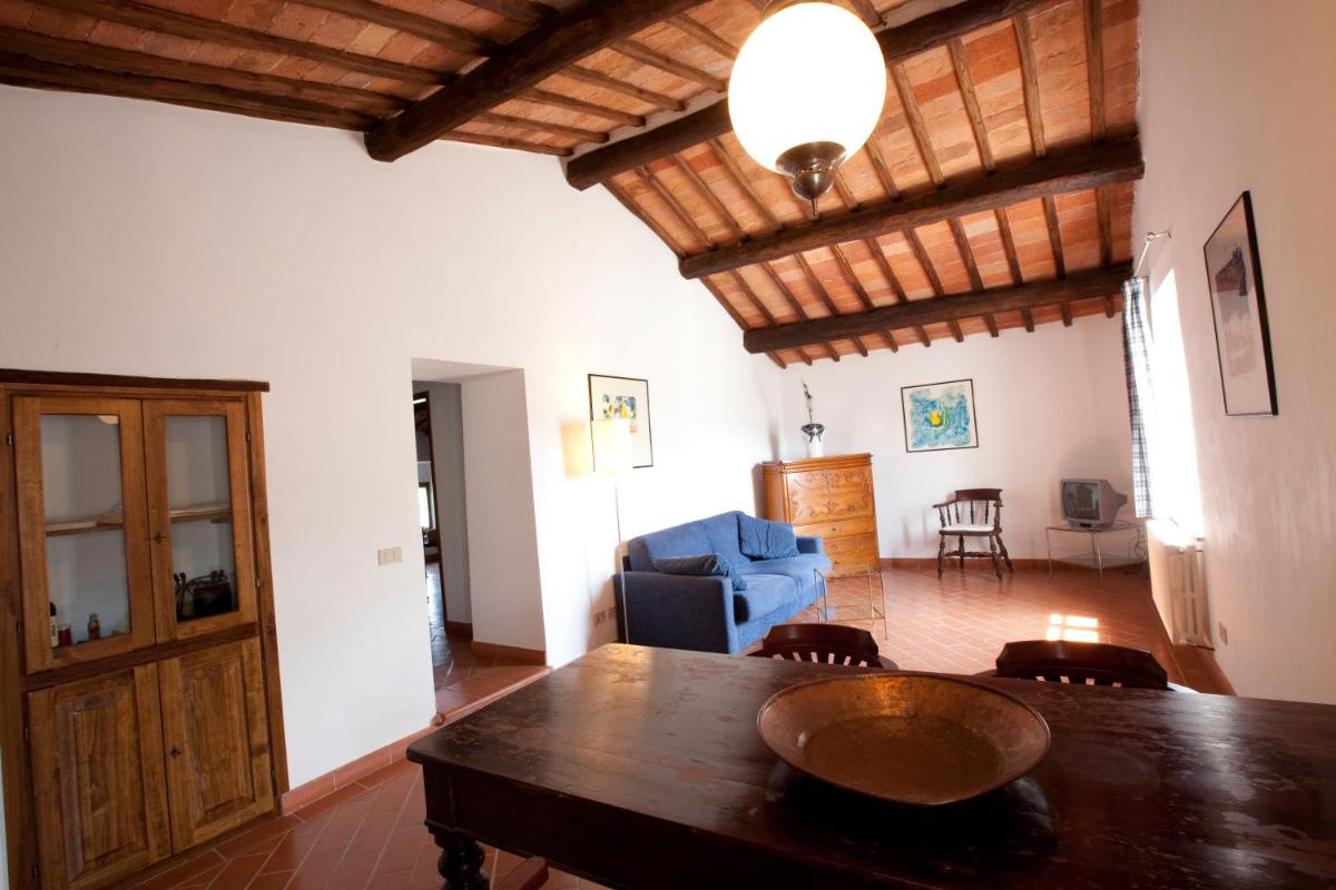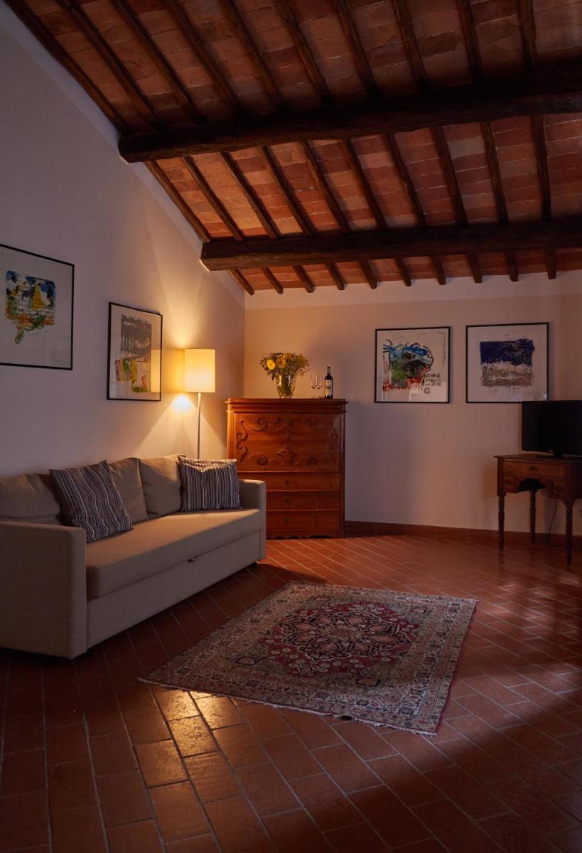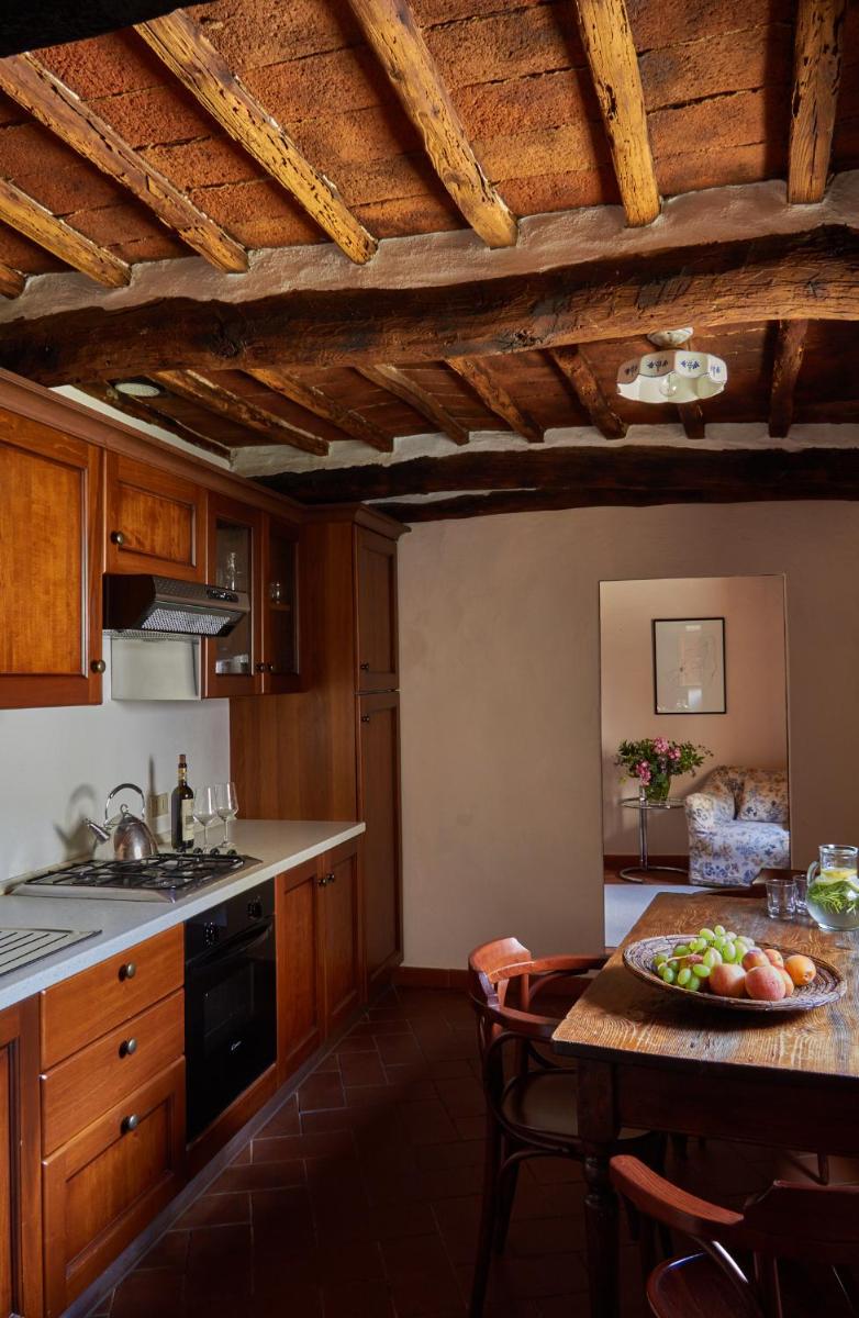 Die Gastfreundschaft gliedert sich in elegante Zimmer (Standard und Superior, viele mit Hydromassage-Dusche) und geräumige, unabhängige Apartments, ideal für längere Aufenthalte, ausgestattet mit einer Kochnische/ausgestatteter Küche. Alle Unterkünfte sind im typisch toskanischen Stil mit freiliegenden Holzbalken, antiken Möbeln und Komfort wie Klimaanlage (in den meisten Einheiten verfügbar), Minibar und Kostenlosem Wi-Fi eingerichtet. Entspannung garantiert der herrliche panoramische Außenpool, der saisonal geöffnet ist und einen atemberaubenden Blick auf die Chianti-Hügel bietet.
