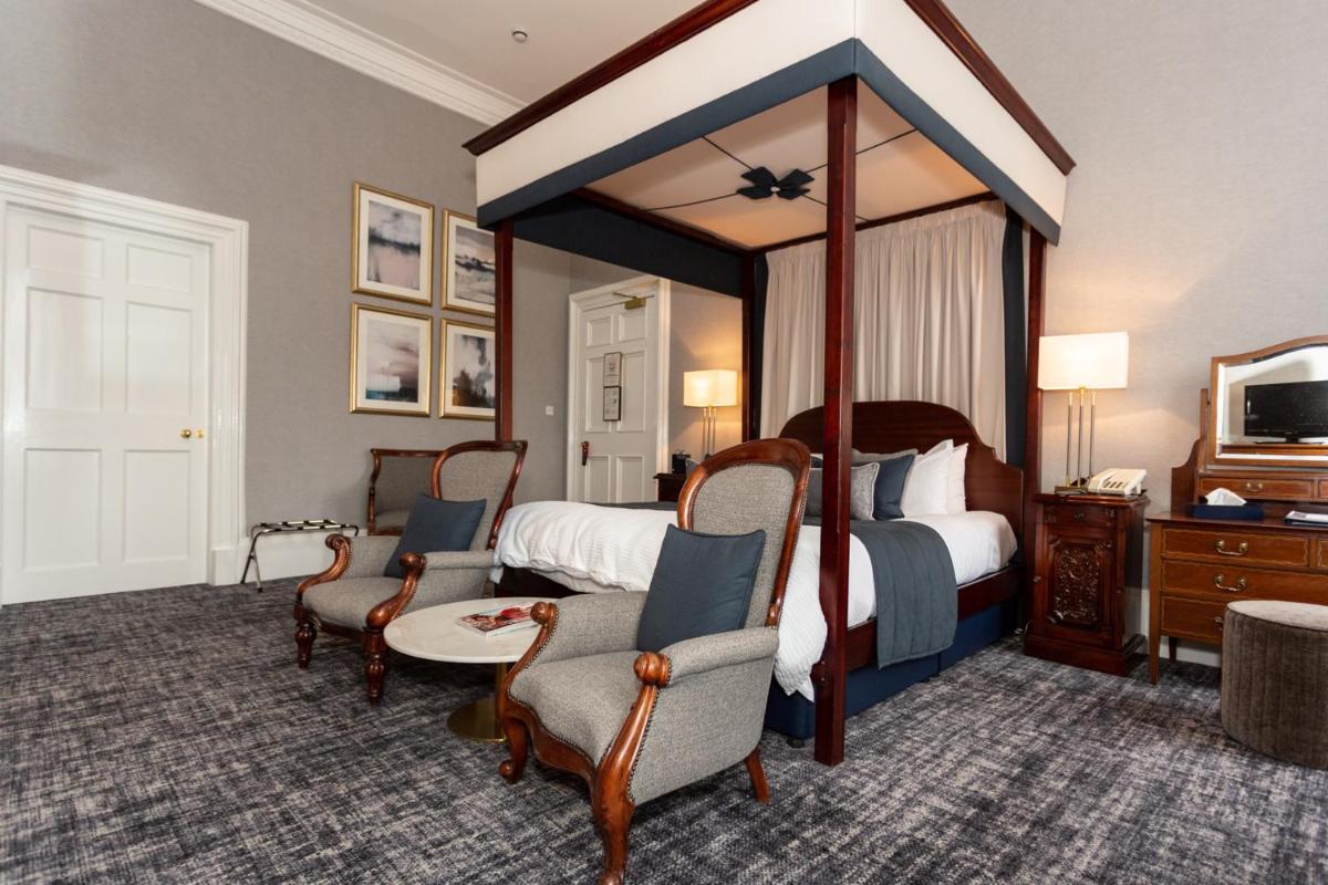 Die Zimmer sind in einem traditionellen und komfortablen Stil eingerichtet und spiegeln den historischen Charakter des Clubs wider. Die Liebe zum Detail und die Qualität der Annehmlichkeiten sorgen für einen erholsamen Aufenthalt. Viele bieten einen Blick auf die von Bäumen gesäumten Straßen der New Town oder die umliegenden Gärten, ein seltener Luxus im Zentrum der Hauptstadt.