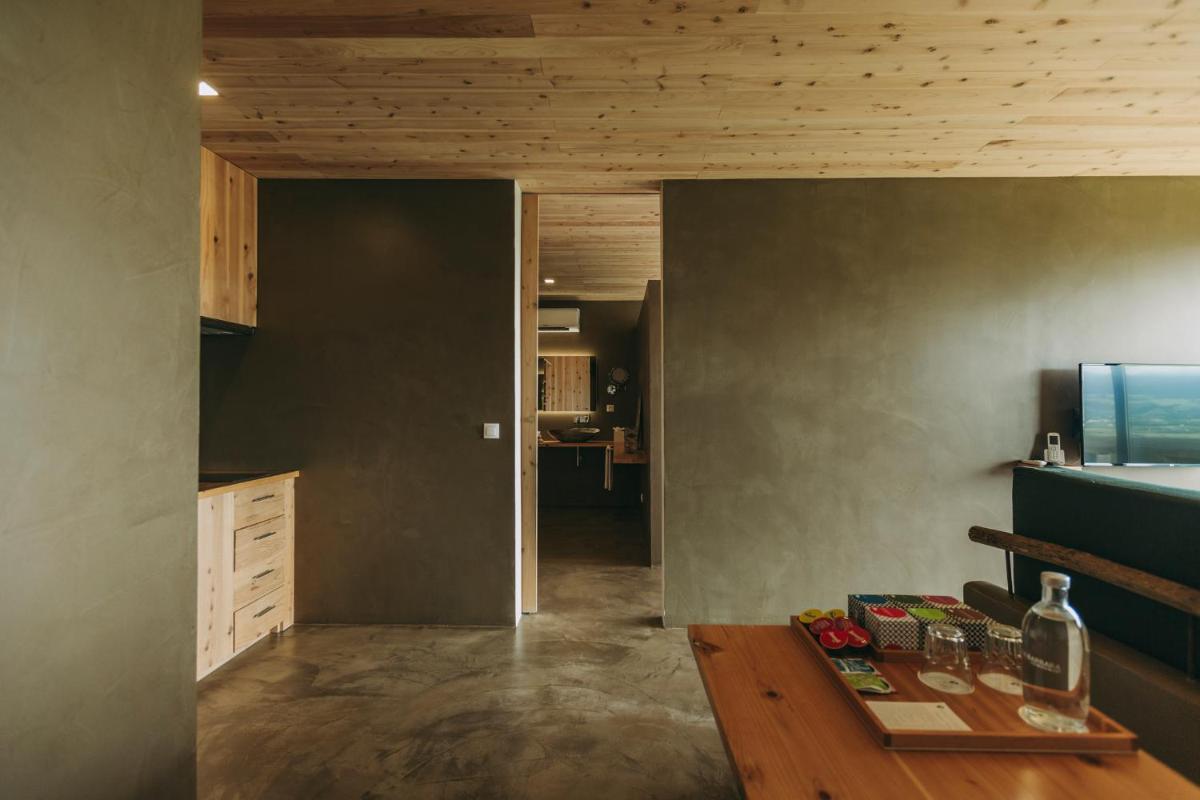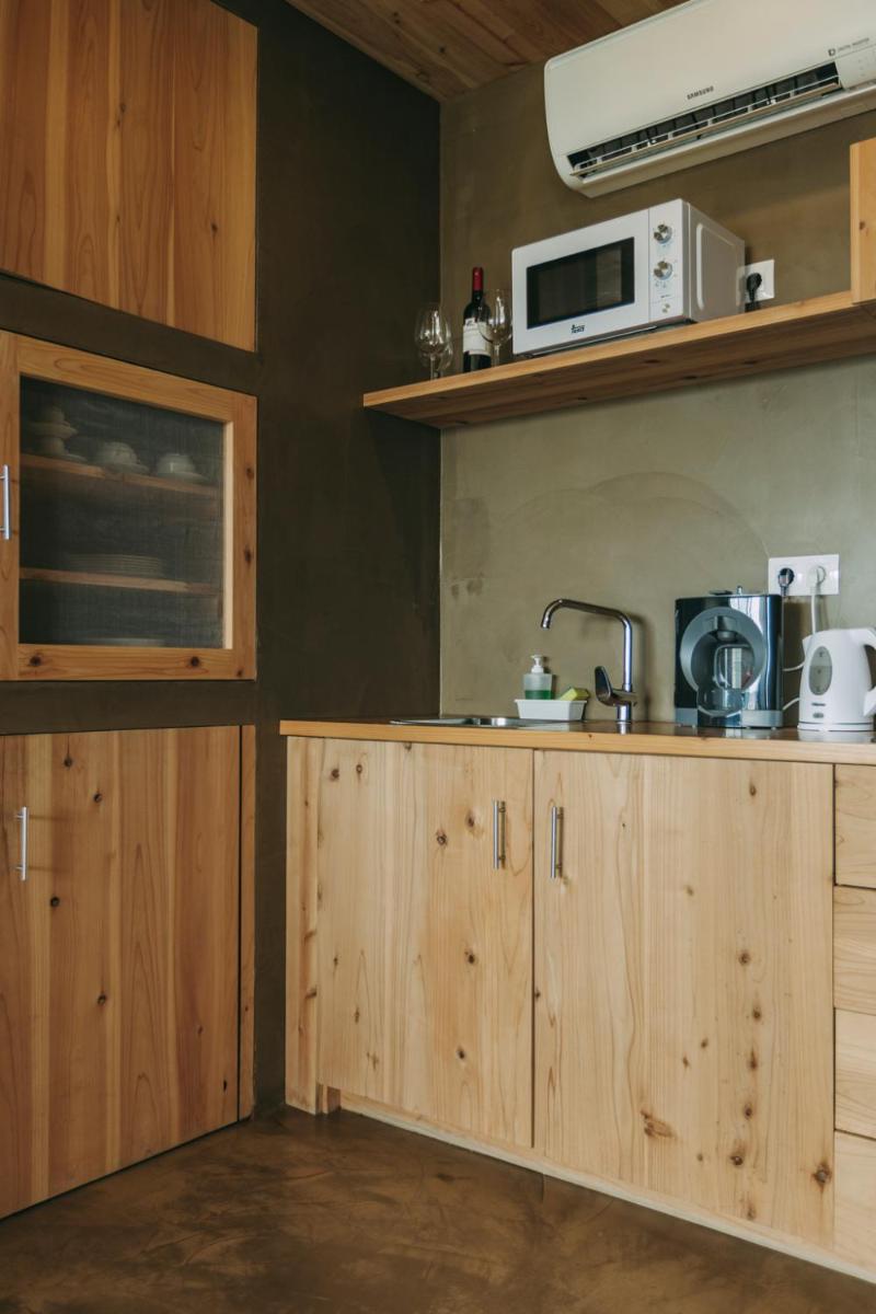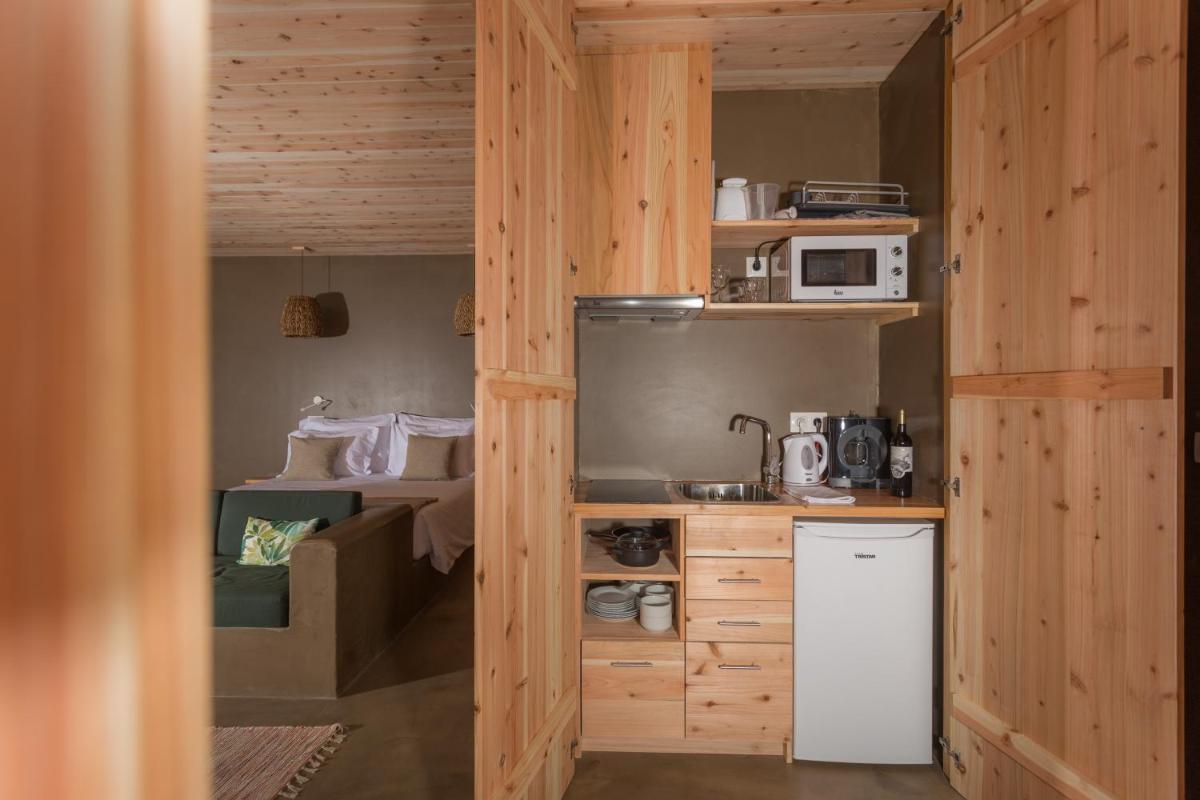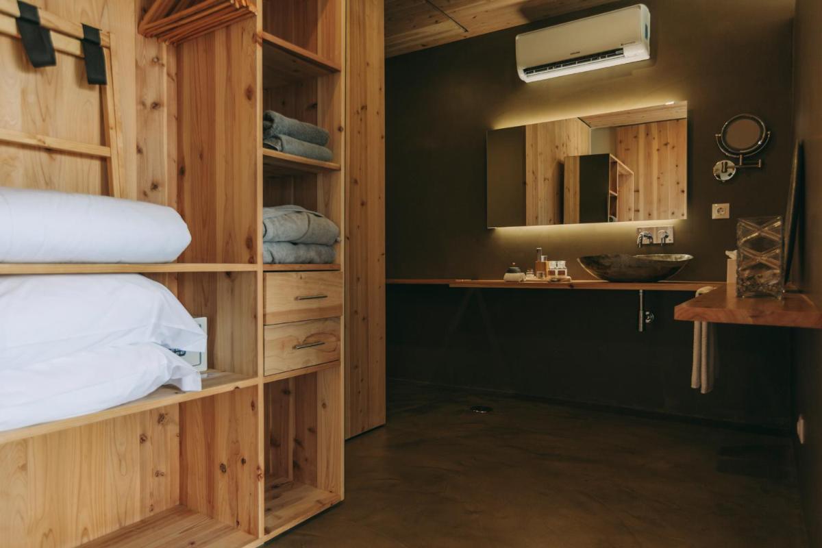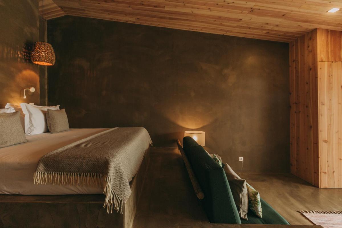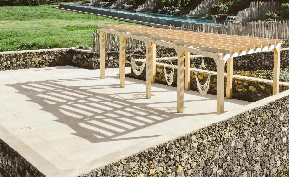 Die Villen sind aus natürlichen Materialien wie Holz und Kork gebaut und so konzipiert, dass sie perfekt mit der vulkanischen Küste verschmelzen. Jede Unterkunft ist ein Beispiel für umweltfreundlichen Luxus mit großen Glasfronten. Ein besonderes Detail ist die private Außendusche in vielen Villen, ideal für eine Erfrischung unter dem Himmel der Azoren nach dem Surfen.