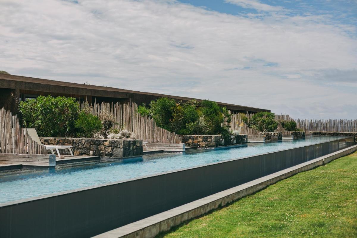 Das Herzstück des Resorts ist der herrliche Infinity-Pool aus dunklem Stein, der direkt in den Ozean zu fließen scheint. Es ist der ideale Ort, um die Kraft des Meeres in aller Sicherheit zu betrachten. Für diejenigen, die eine tiefere Verbindung suchen, bietet das Resort meditative Ecken zwischen den schwarzen Sanddünen, wo nur die Meeresbrise die Stille unterbricht.