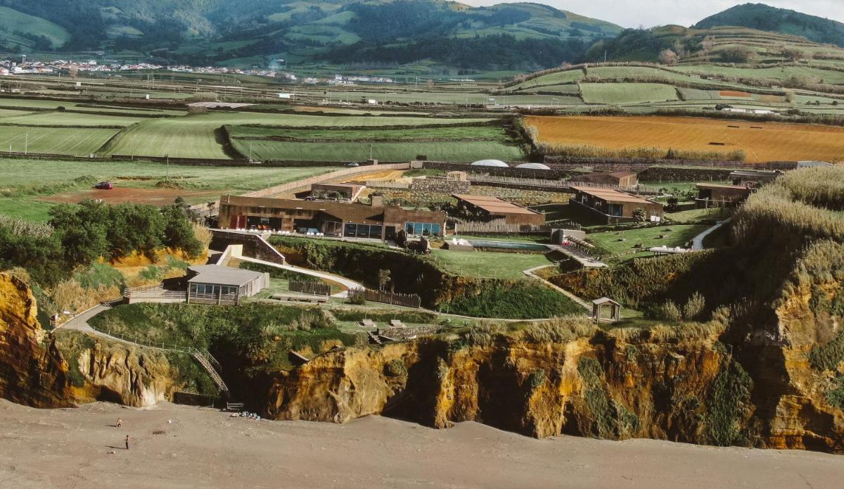 Das Santa Barbara Eco-Beach Resort ist ein Refugium der Nachhaltigkeit mit Blick auf den spektakulären Strand von Santa Barbara in Ribeira Grande. Dieses einzigartige Resort auf São Miguel verbindet moderne, minimalistische Architektur mit der wilden Seele der Azoren und bietet ein Erlebnis, bei dem das Rauschen der Wellen und die smaragdgrünen Berge die Hauptdarsteller sind.