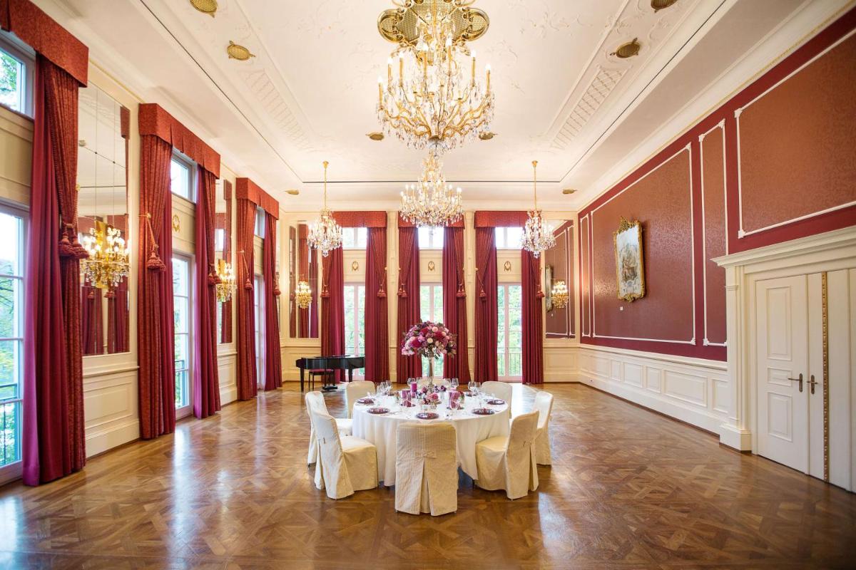 Ursprünglich ein Jagdschloss aus dem 15. Jahrhundert, bewahrt das Schloss eine königliche Atmosphäre mit Freskendecken, antiken Möbeln und einer Kunstgalerie mit Werken alter Meister. Die Zimmer und Suiten, einschließlich der luxuriösen See-Cottages, sind mit klassischem Luxus eingerichtet und bieten atemberaubende Panoramablicke auf den See und die Berge.