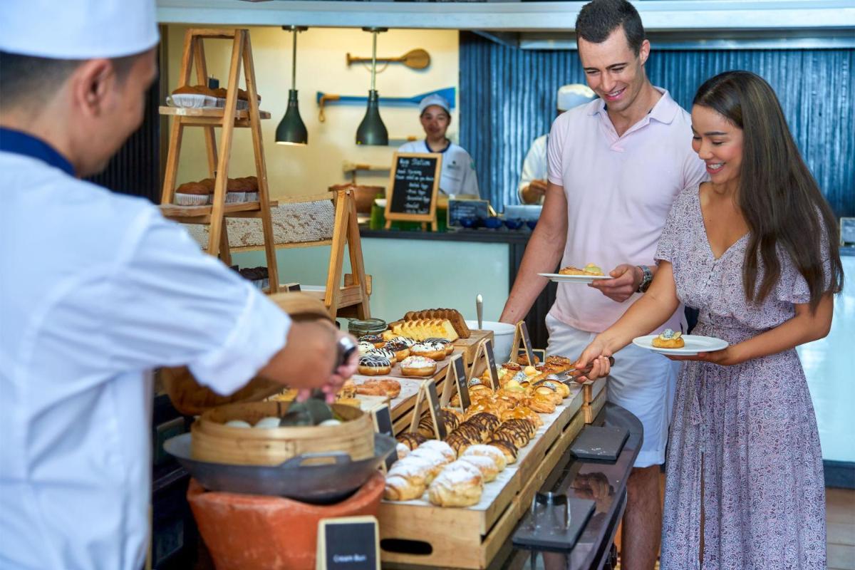 Das Sheraton Samui ist bekannt für seine Aufmerksamkeit gegenüber jüngeren Gästen, mit einem gut ausgestatteten Kids Club und Aktivitäten für Kinder, die es den Eltern ermöglichen, Momente der Ruhe zu genießen. Die Küche ist flexibel und auf alle Geschmäcker zugeschnitten, bietet lässige und raffinierte Optionen mit Fokus auf internationale Aromen und kinderfreundliche Favoriten.