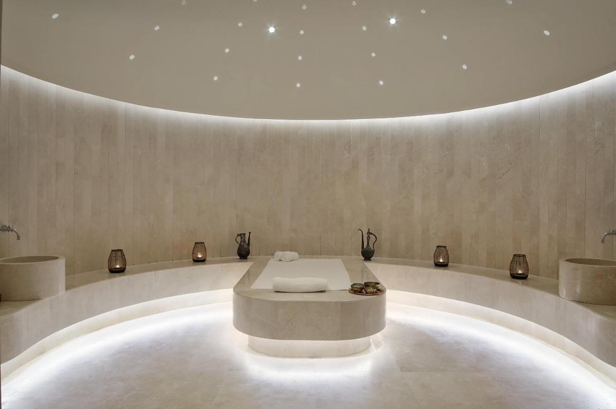 Das Herzstück des Resorts ist sein 10.000 Quadratmeter großes Spa, ein Heiligtum, das Wellness gewidmet ist und traditionelle und östliche Medizin mit Hydrothermaltherapien kombiniert. Gäste können Finnische Saunen, Türkische Bäder, Hydrotherapie-Pools und die exklusive Alchemy Bar nutzen, in der sie personalisierte Peelings mit Bio-Kräutern und Salzen kreieren können.