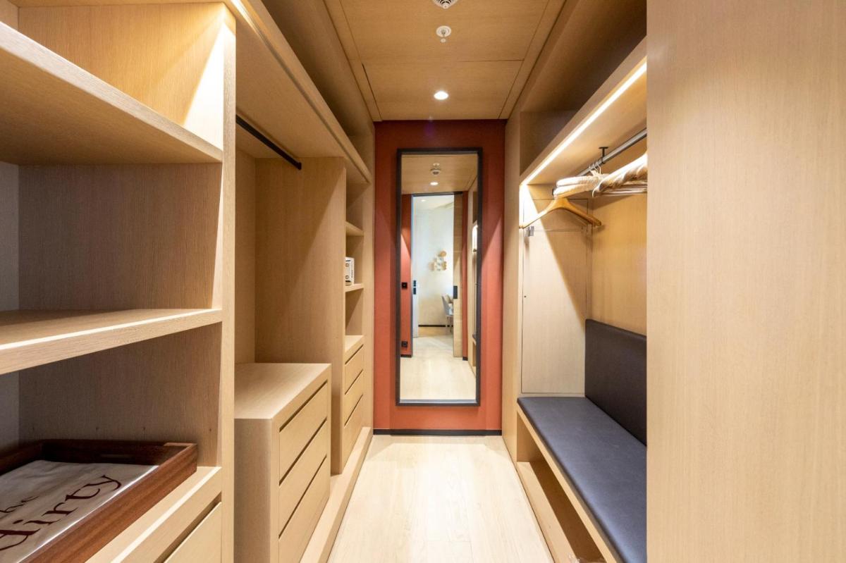 Dieses Zimmer bietet eine eigene Dachterrasse, einen Pool und Meerblick. Auf der Terrasse stehen Ihnen Liegen und ein Tisch zur Verfügung. Ein begehbarer Kleiderschrank und ein Ankleidezimmer sind ebenfalls vorhanden. Das eigene Bad ist mit Marmorfliesen, einem Doppelwaschbecken, kostenfreien Pflegeprodukten, einem Haartrockner, einem Bademantel und Hausschuhen ausgestattet. Stimmungsbeleuchtung und Temperaturregelung werden durch ein iPad gesteuert.