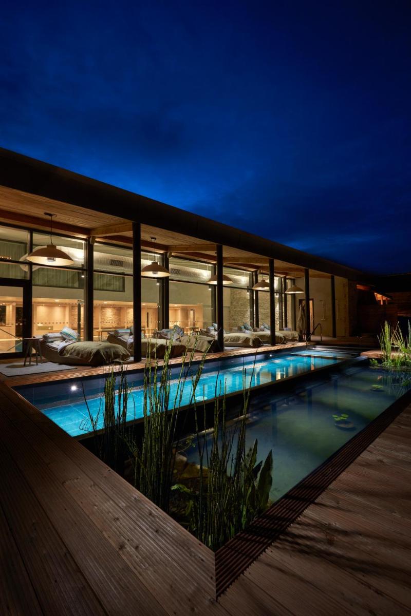 Das Spa ist ein elegantes und modernes Wellness-Refugium mit Innenpool, Thermalbereich und einem wunderschönen natürlichen Außenpool für die Mutigeren. Das Design fügt sich perfekt in die umliegende Landschaft ein und bietet ein Entspannungserlebnis in Harmonie mit der Natur.