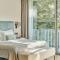 Die Architektur, die darauf ausgelegt ist, das natürliche Licht zu maximieren, schafft eine offene und luftige Atmosphäre. Die 131 Zimmer und Suiten sind äußerst geräumig, gekennzeichnet durch ein minimalistisches, aber warmes Design, mit edlen Materialien wie Holz und Marmor. Alle Zimmer verfügen über private Balkone oder Terrassen, die einen außergewöhnlichen Blick auf den See oder den umliegenden Park bieten.