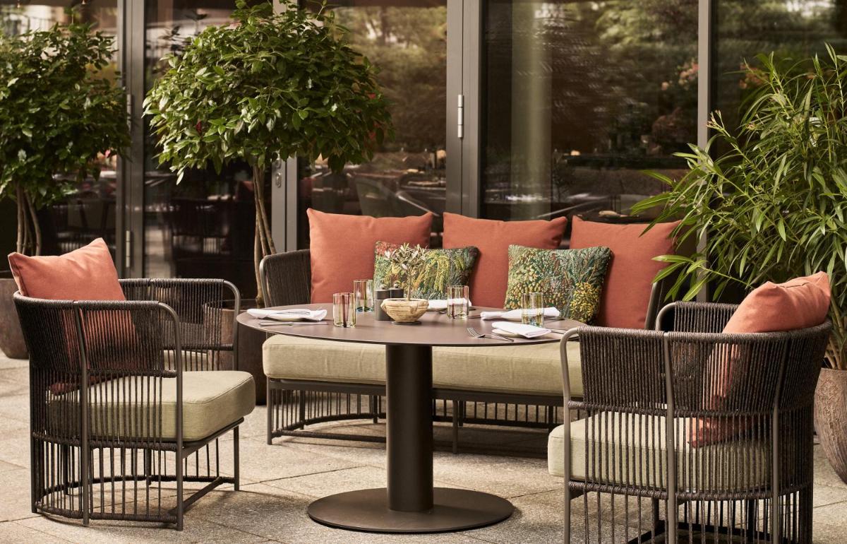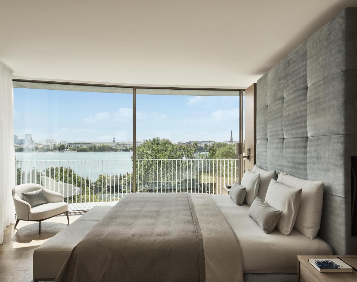 Das The Fontenay Hamburg ist ein 5-Sterne-Superior-Hotel, eine Ikone des architektonischen Designs, das direkt am Ufer des Alstersees liegt. Seine einzigartige Struktur, ein skulpturales, kleeblattförmiges Gebäude, symbolisiert Fließfähigkeit und Eleganz. Es repräsentiert den Höhepunkt der modernen Hamburger Gastfreundschaft und bietet diskreten Luxus und erstklassigen Service.