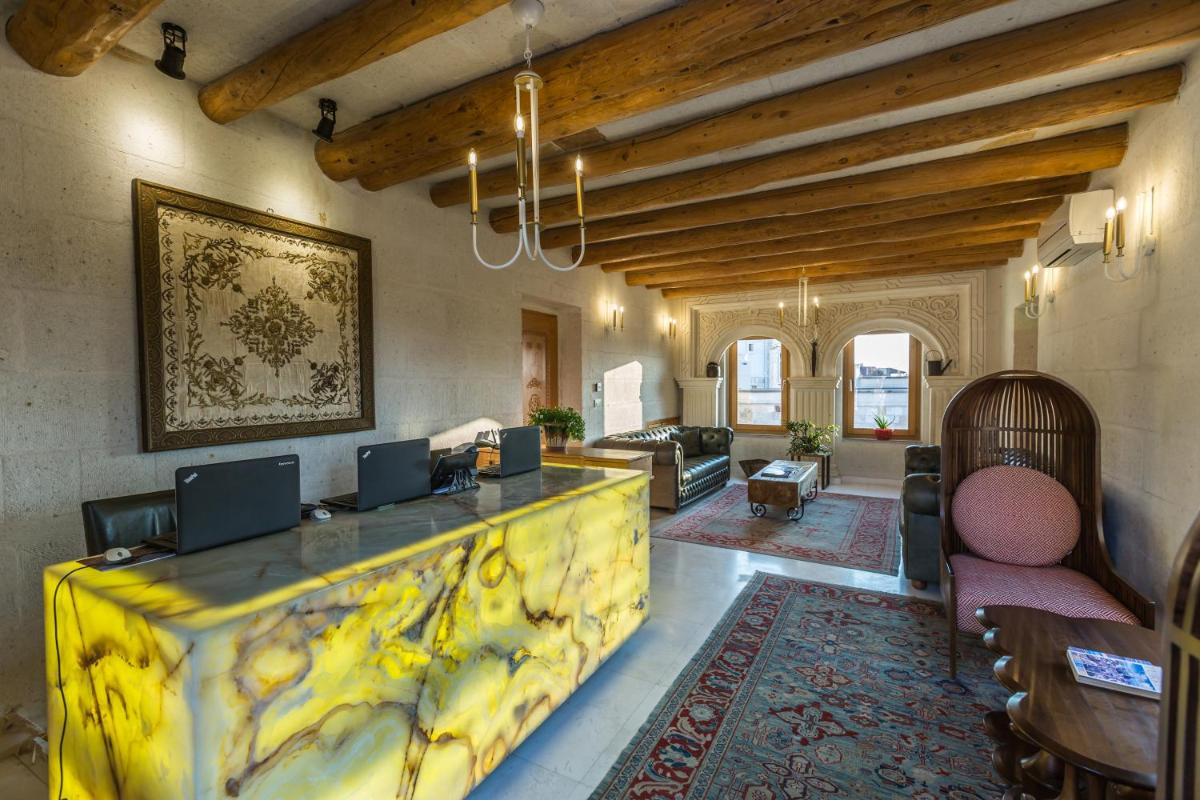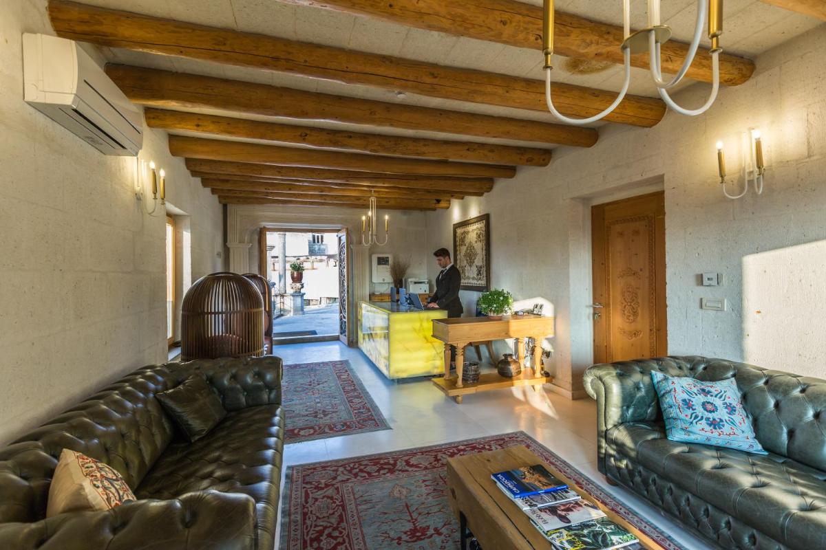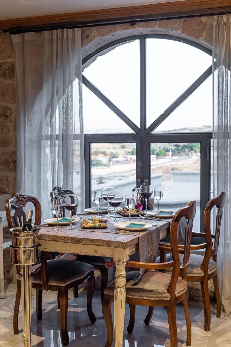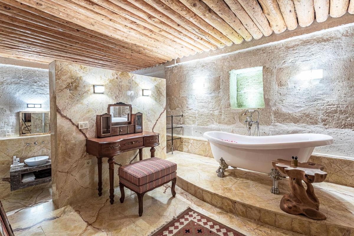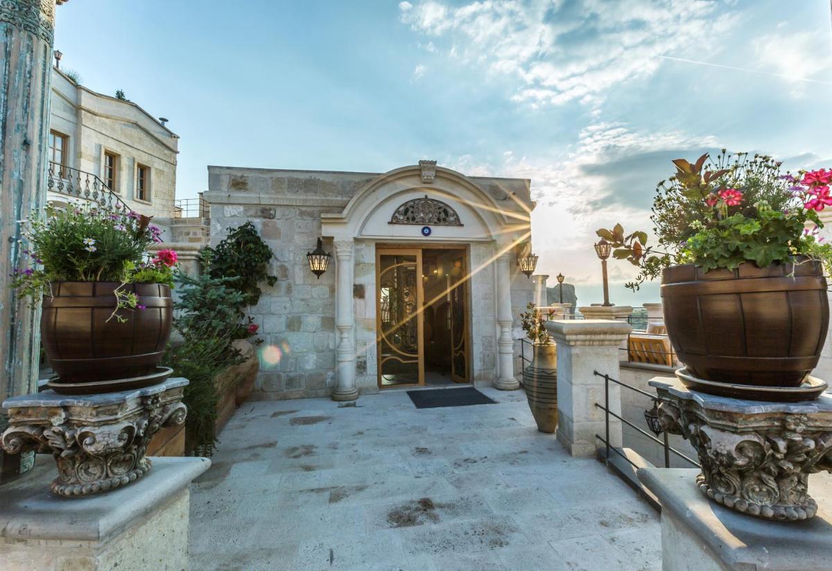Das Hotel verfügt über mehrere Terrassen, die den perfekten Blick bieten, um den Sonnenaufgang zu bewundern, der oft von den über das Tal schwebenden Heißluftballons unterbrochen wird. Das Restaurant zelebriert die reiche anatolische Kochtradition mit frischen Produkten und regionalen Rezepten, serviert in einer eleganten, historischen Umgebung.