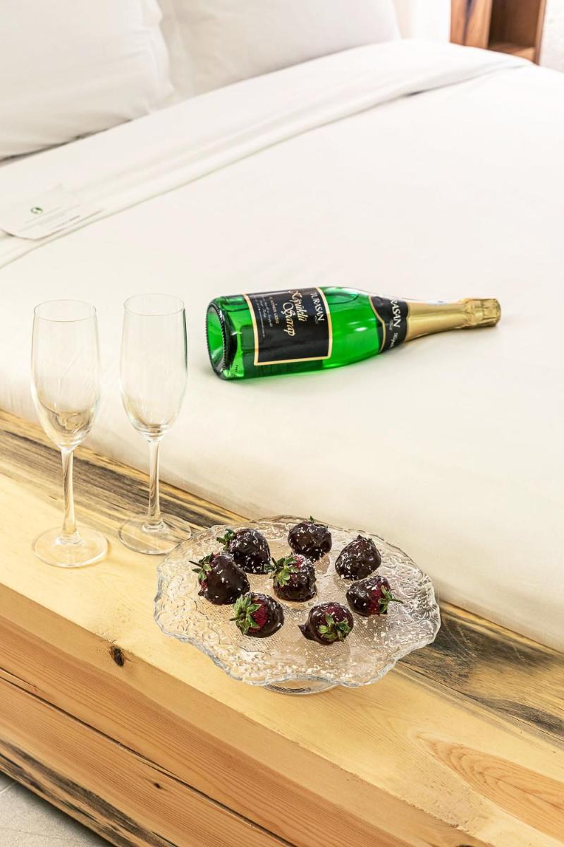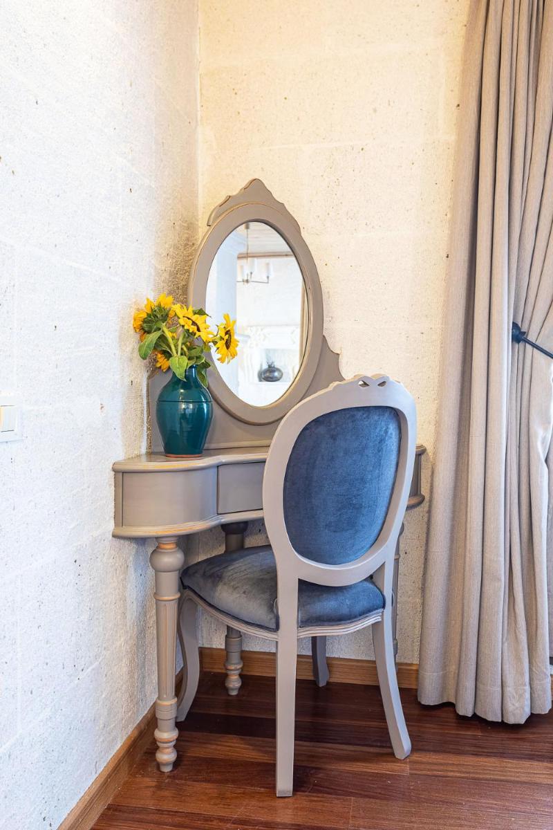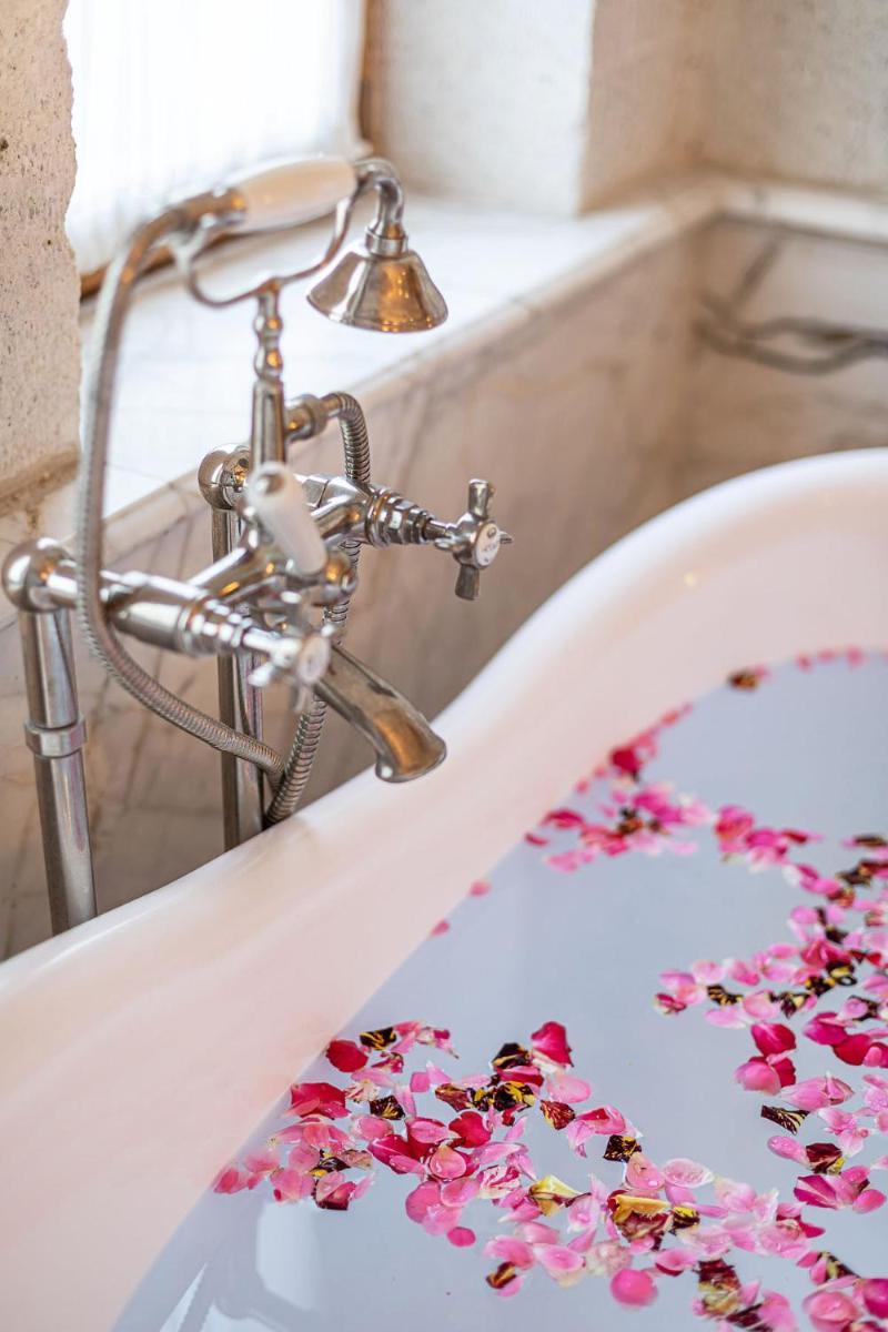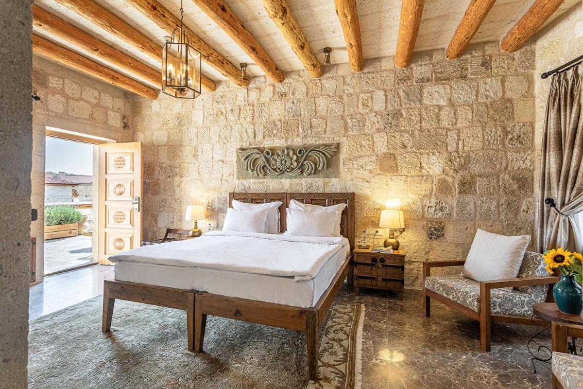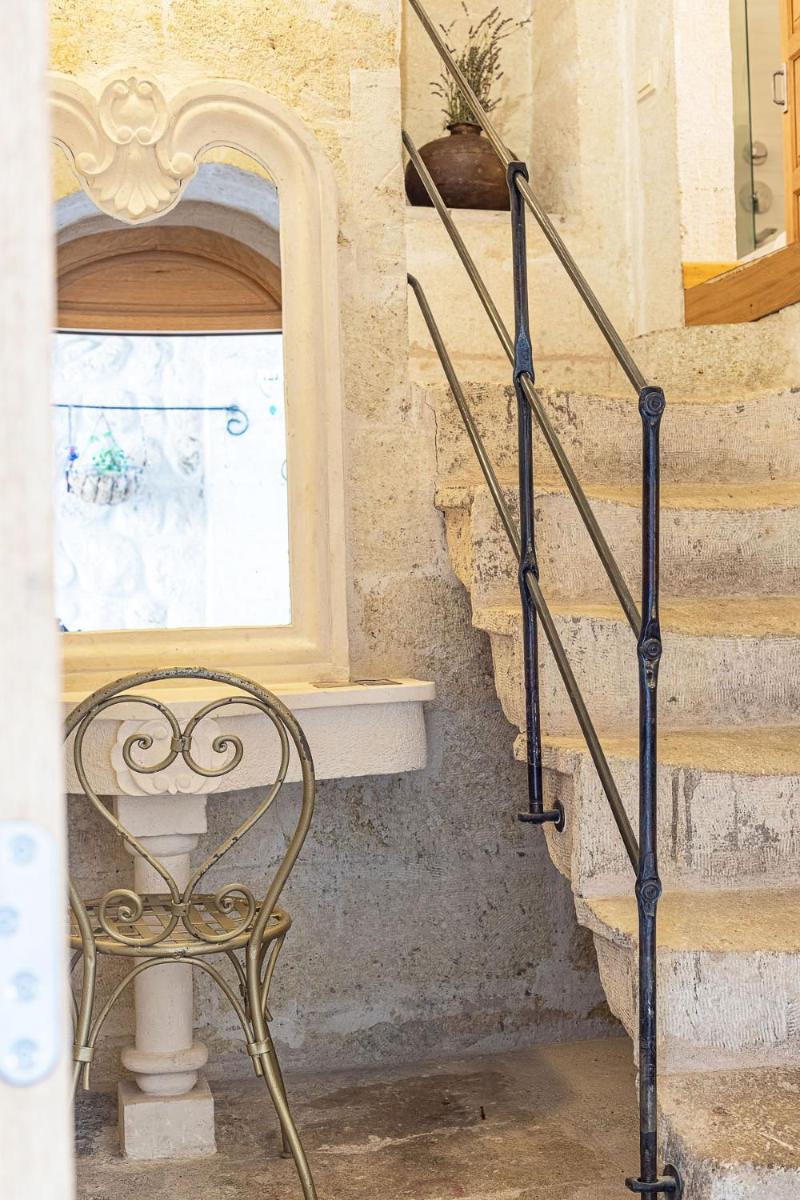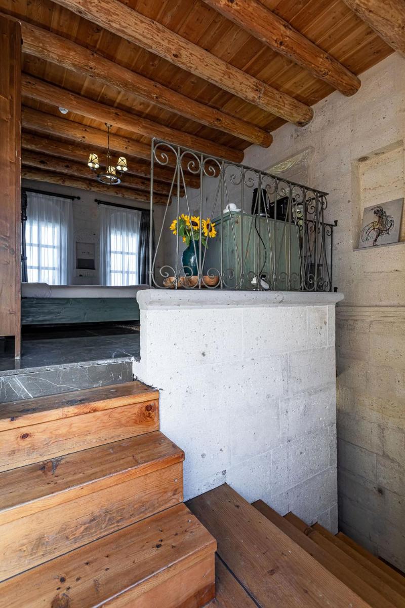 Jedes Zimmer ist einzigartig, entweder in den Tufffelsen gehauen oder mit lokalem Stein gebaut, wobei der rustikale Charme erhalten bleibt und luxuriöse Annehmlichkeiten wie Whirlpools und Fußbodenheizung integriert werden. Das Innendesign kombiniert lokale Handwerkskunst mit einer minimalistischen, eleganten Ästhetik und sorgt für eine Atmosphäre der intimen Ruhe.