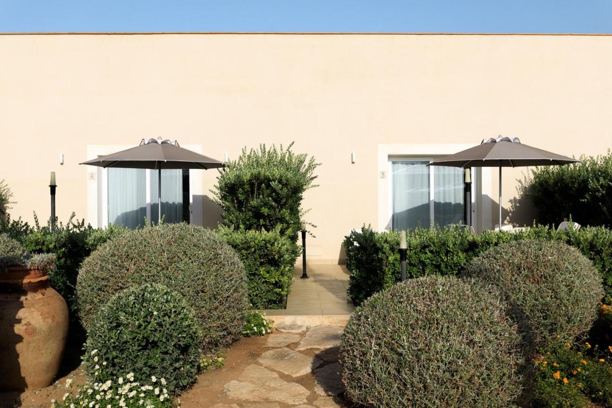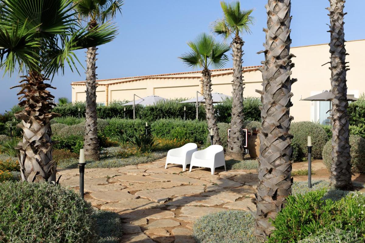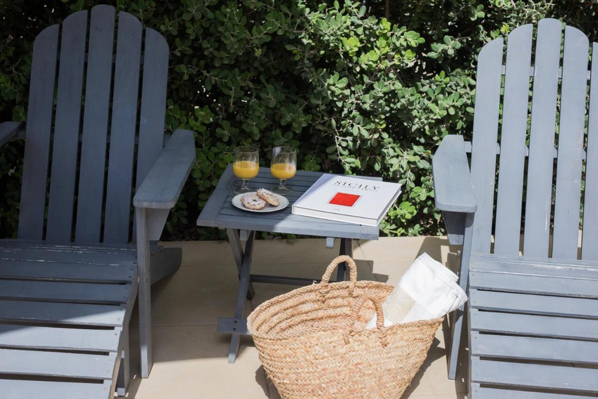 Die Tonnara liegt direkt an einer Felsenküste mit kristallklarem Wasser, die sich ideal zum Schnorcheln oder einfach zum Entspannen eignet. Sonnenliegen und Außenduschen stehen im gemeinschaftlichen Garten zur Verfügung, mit Blick auf die sizilianische Küste.