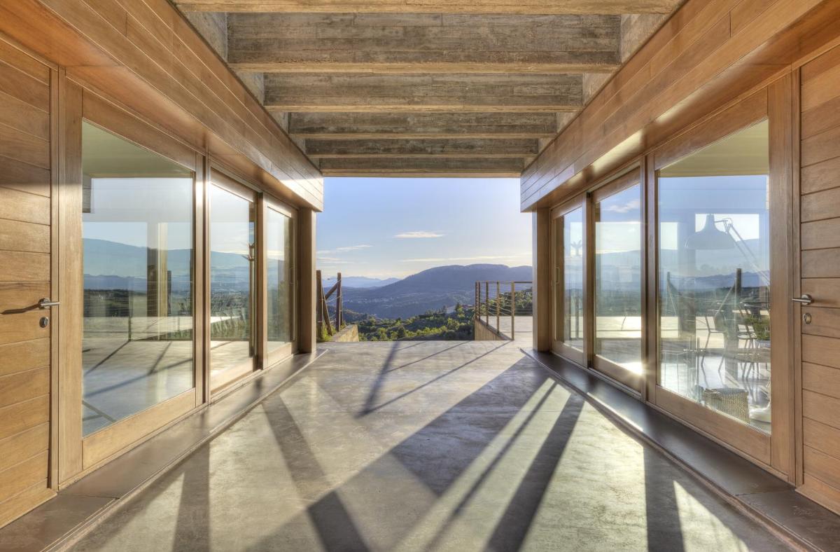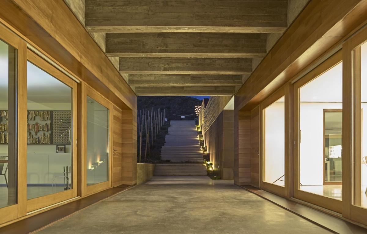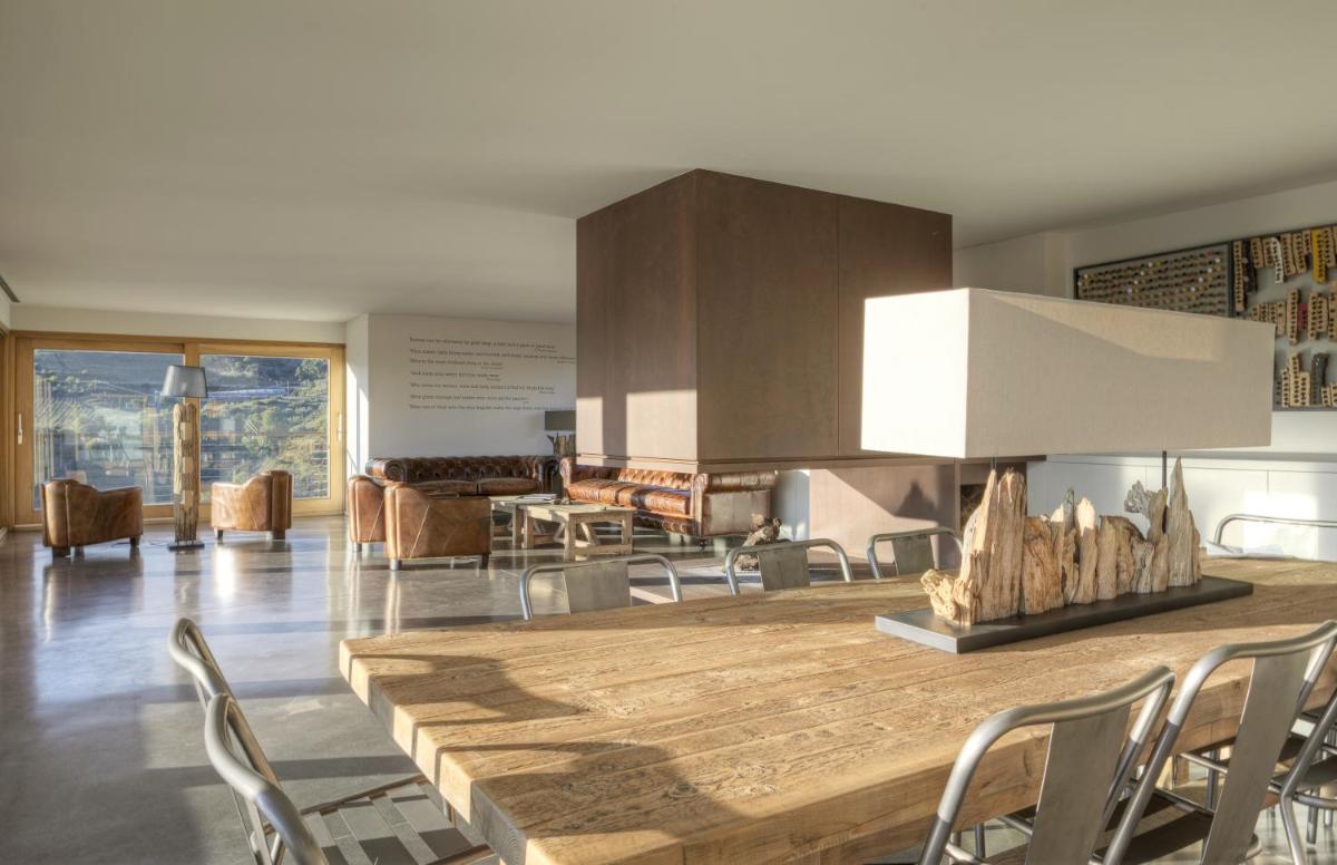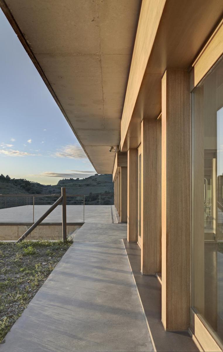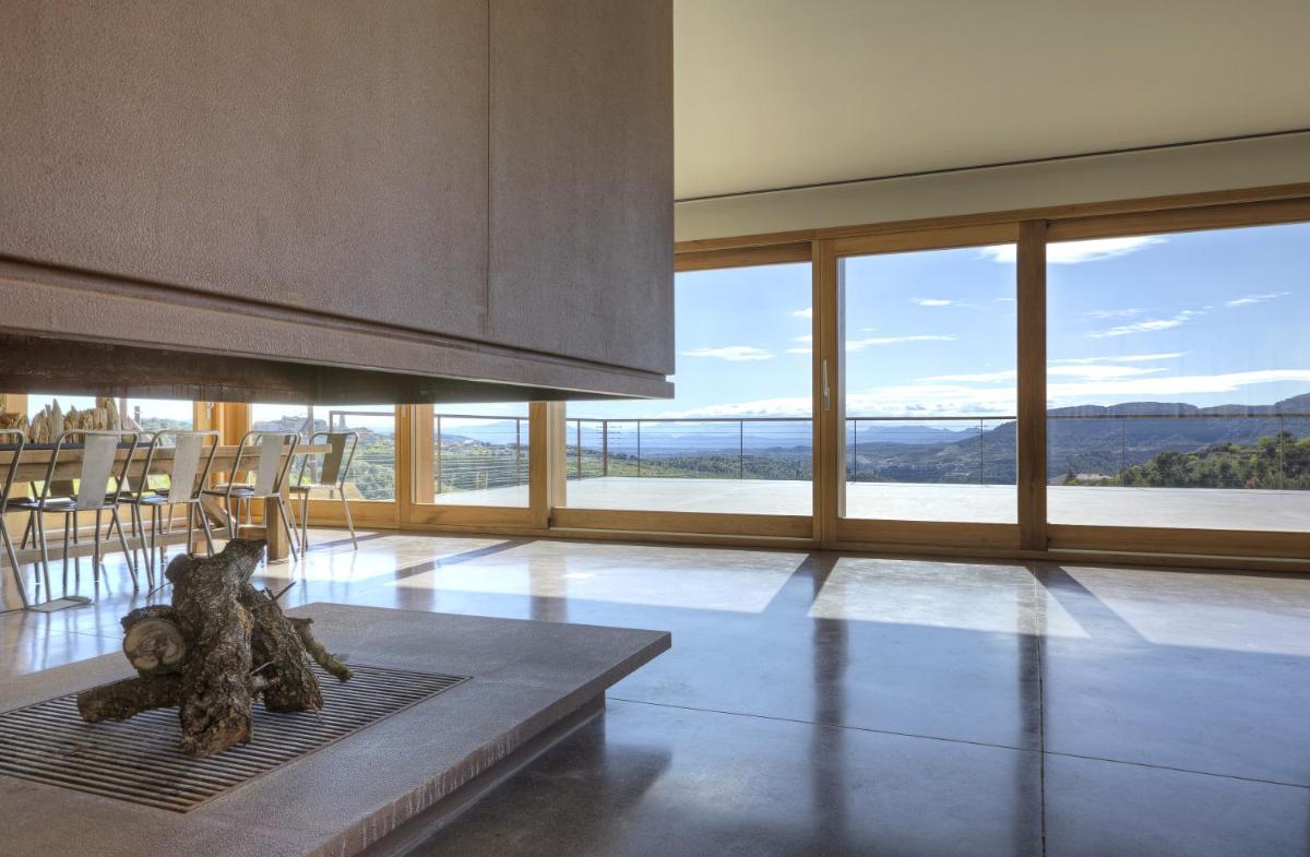 Die Architektur des Trossos Del Priorat ist zeitgenössisch und minimalistisch, fügt sich aber nahtlos in die Umgebung ein. Das Gebäude wurde als natürliche Erweiterung der Landschaft konzipiert, wobei lokale Materialien und nachhaltige Bautechniken verwendet wurden. Große Fenster maximieren nicht nur das natürliche Licht, sondern bieten auch ständigen Sichtkontakt zu den umliegenden Weinbergen, wodurch die Schönheit der Landschaft direkt ins Innere gelangt.