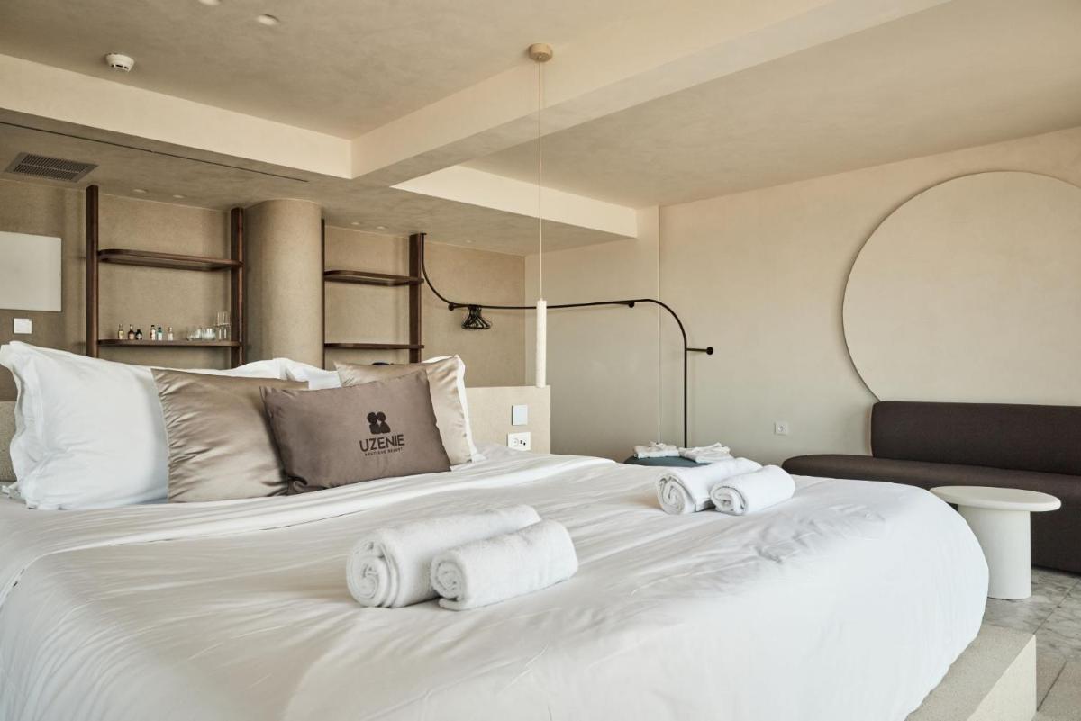 Das Uzenie All Suites Boutique Resort verkörpert den Gipfel personalisierter Gastfreundschaft an der Küste von Rethymno. Dieses exklusive Resort bietet eine Dimension von feinem Luxus, in der jede Suite als unabhängige private Residenz fungiert, eingebettet in eine Architektur, die lokalen Stein mit modernen Linien und üppigen mediterranen Gärten verbindet.
