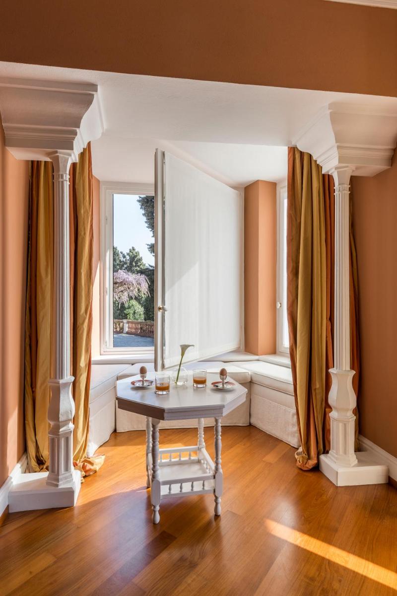 Das Relais bietet einzigartige Suiten und Zimmer, die auf die beiden historischen Villen verteilt sind. Jede Unterkunft ist mit Antiquitäten, Kunstgegenständen und Kunstwerken eingerichtet, was den Charme des späten neunzehnten Jahrhunderts widerspiegelt. Die Unterkünfte sind mit allen modernen Annehmlichkeiten ausgestattet, darunter Klimaanlage, Satelliten-TV und Minibar, und verfügen über große Fenster oder private Balkone, die einen spektakulären Blick auf das Meer und die terrassierten Gärten bieten. Kostenloses Hochgeschwindigkeits-WiFi ist verfügbar.