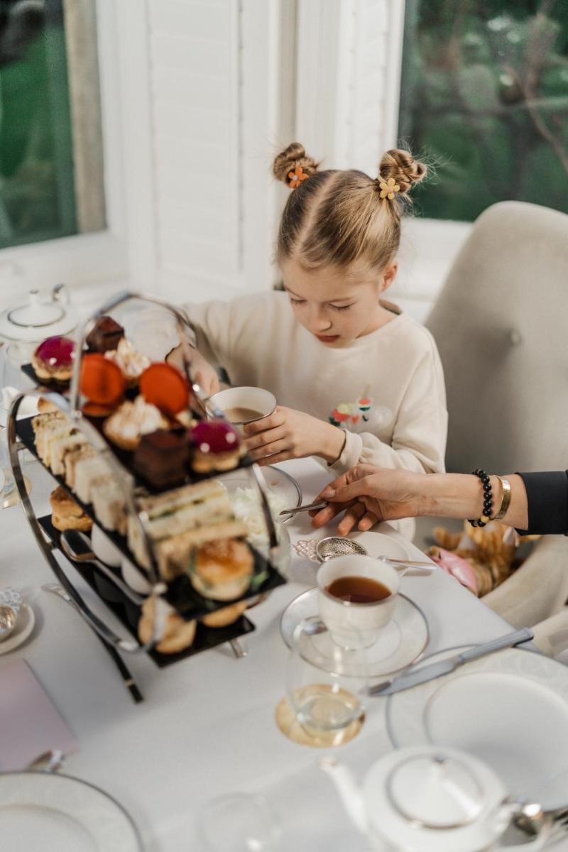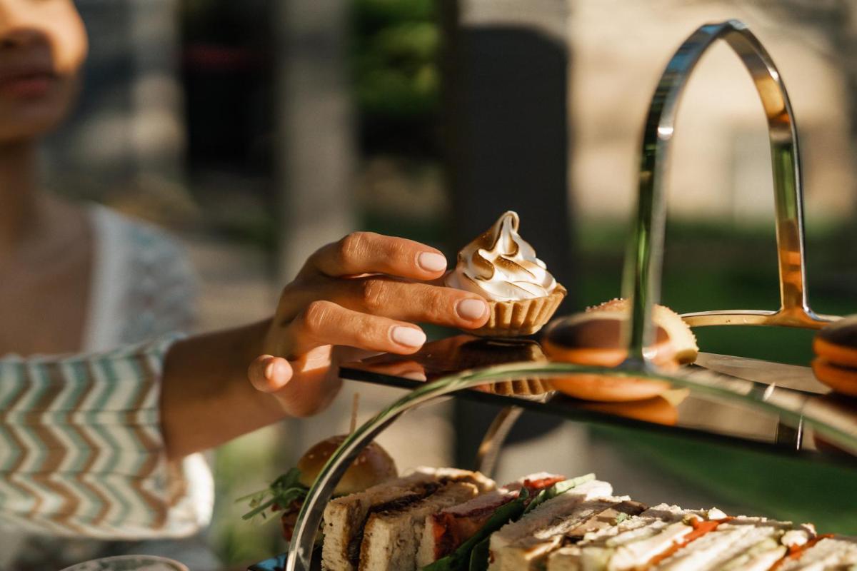 Das Frühstück ist ein Höhepunkt des Aufenthalts, mit Gourmet-Optionen, die auf Bestellung zubereitet werden, unter Verwendung der besten lokalen Zutaten. Das Hotel verfügt auch über einen eleganten Teesalon, ideal für einen entspannenden Nachmittagstee in einer charmanten Umgebung.