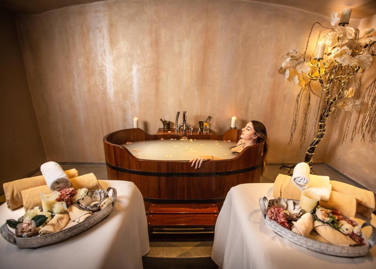 Zu den herausragenden Ausstattungsmerkmalen dieser Suite gehören ein eigener Pool, ein Whirlpool und eine Whirlpool-Badewanne. Die klimatisierte Suite verfügt über einen eigenen Eingang, 1 Schlafzimmer und 1 Badezimmer mit einer Badewanne oder einer Dusche und einem Bidet. Dazu bietet die Suite eine Terrasse, schallisolierte Wände, eine Minibar und einen Flachbild-Kabel-TV. In der Wohneinheit befindet sich 1 Bett.