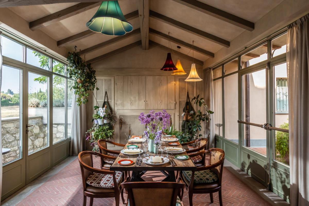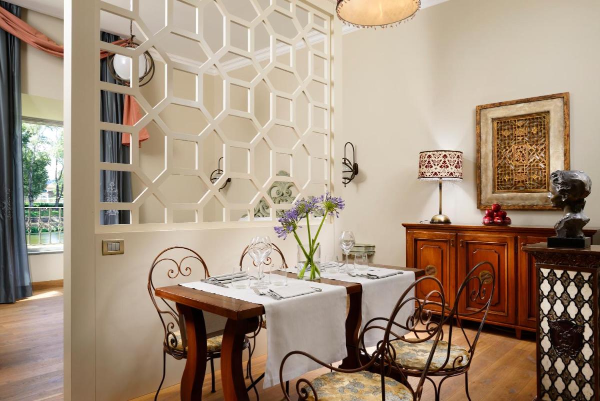 Die 45 Zimmer und Suiten sind in drei Themenbereiche (La Villa, Il Villino und Il Loggiato) unterteilt, von denen jeder von toskanischer Kunst inspiriert und mit edlen Materialien wie Marmor und Schmiedeeisen von lokalen Handwerkern gefertigt wurde. Die Unterkünfte sind hell und ausgestattet mit Klimaanlage, kostenlosem WLAN, Smart TV und Minibar. Die luxuriösen Suiten im Villino bieten oft einen spektakulären Blick auf den Arno und exklusive Annehmlichkeiten wie einen freistehenden Whirlpool oder ein privates Türkisches Bad.