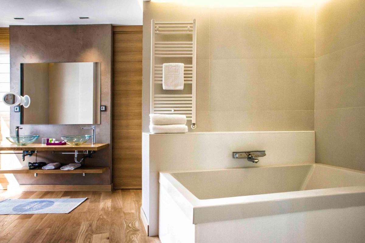 Die klimatisierten Zimmer sind alle schallisoliert und mit einem Flachbild-Sat-TV, einer Minibar sowie einem Laptop-Safe ausgestattet. Im eigenen Bad liegen ein Haartrockner und kostenlose Pflegeprodukte für Sie bereit. Es ist mit entweder einer Badewanne oder einer extragroßen Regendusche mit einem rutschfesten Keramikboden aus Krion ausgestattet.