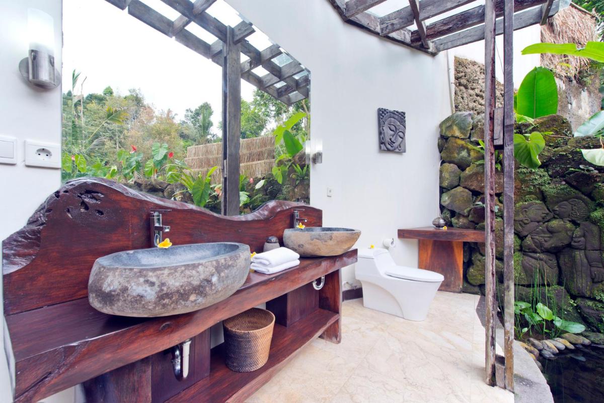 The villas are designed in traditional Balinese style, making extensive use of wood, natural stone, and thatched roofs (alang-alang). This design not only creates a warm and inviting atmosphere but also ensures that each villa integrates harmoniously with the landscape. Accommodations often include a private pool and an outdoor meditation pavilion.