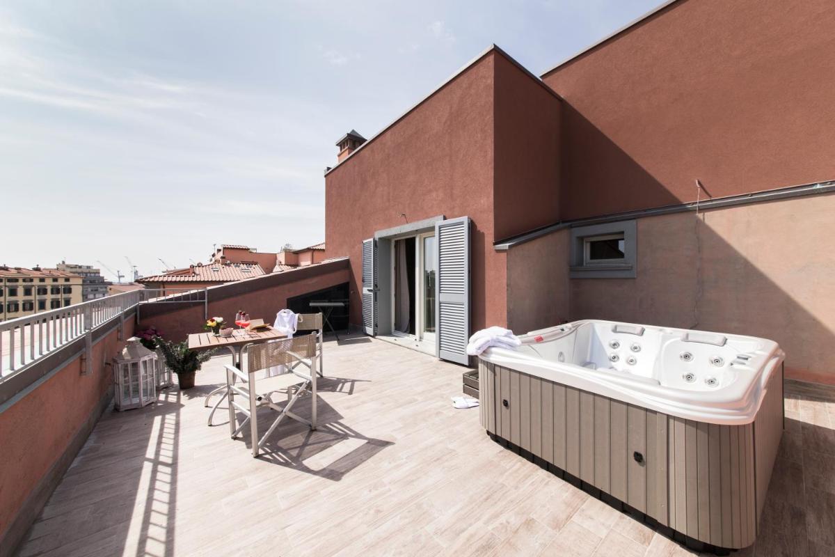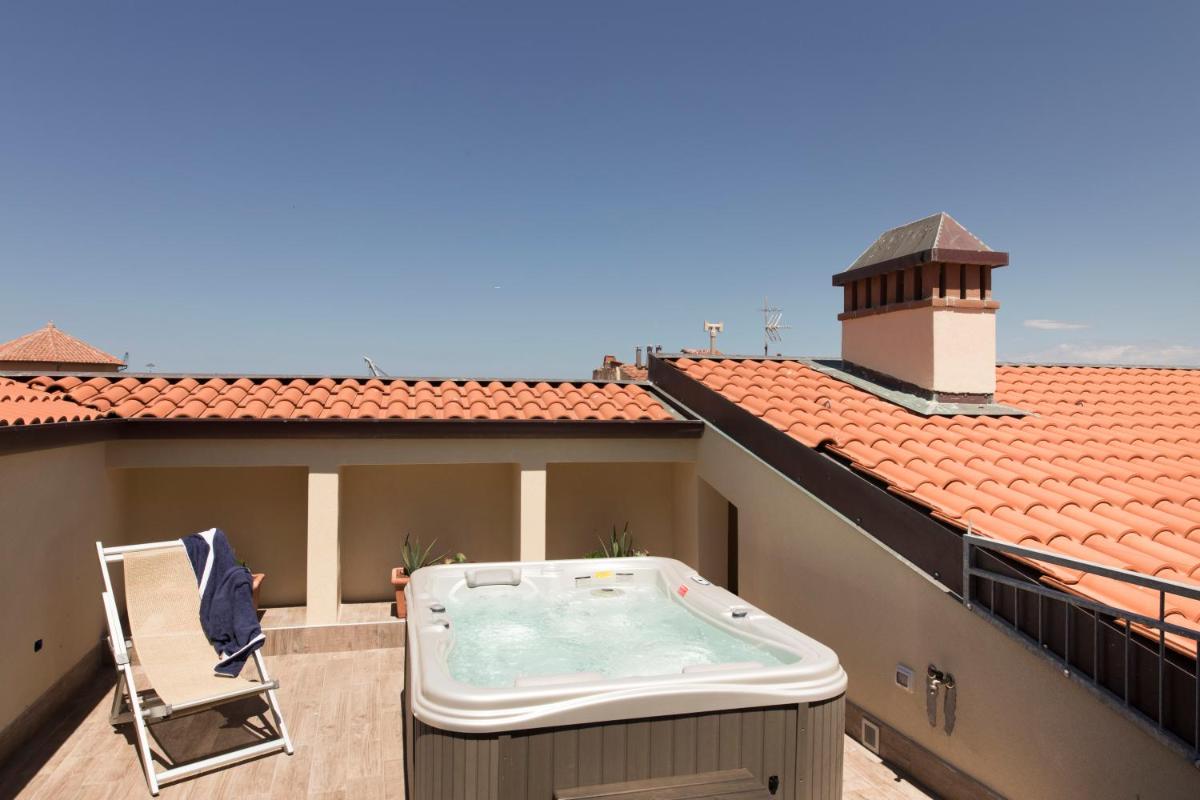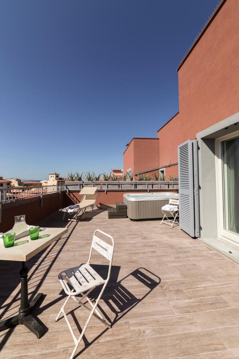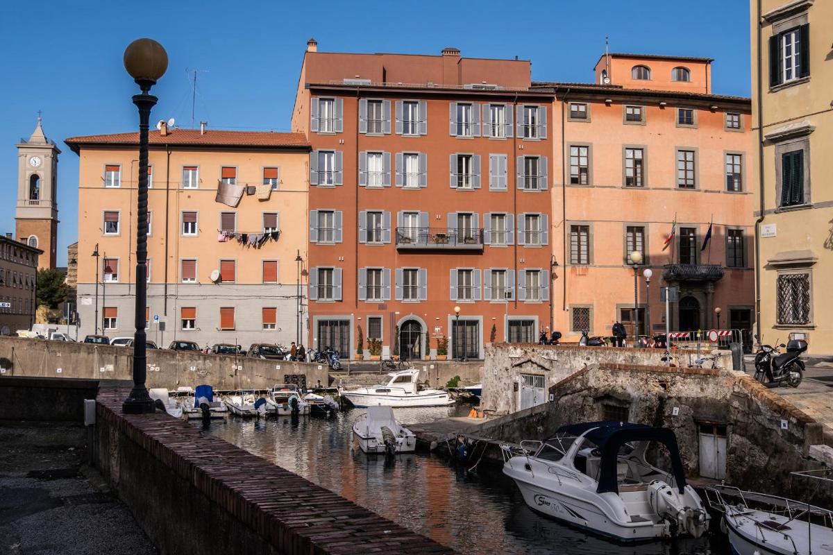 The 17 accommodations are spacious, modern, and comfortably furnished. Many suites and apartments offer generous spaces, with the option of one or two bedrooms and two bathrooms, ideal for families or groups. A touch of luxury is provided by the Suites with Private Hot Tub located on the fifth floor, which feature a private panoramic terrace with a jacuzzi, offering a suggestive view of the canals and Livorno's skyline.