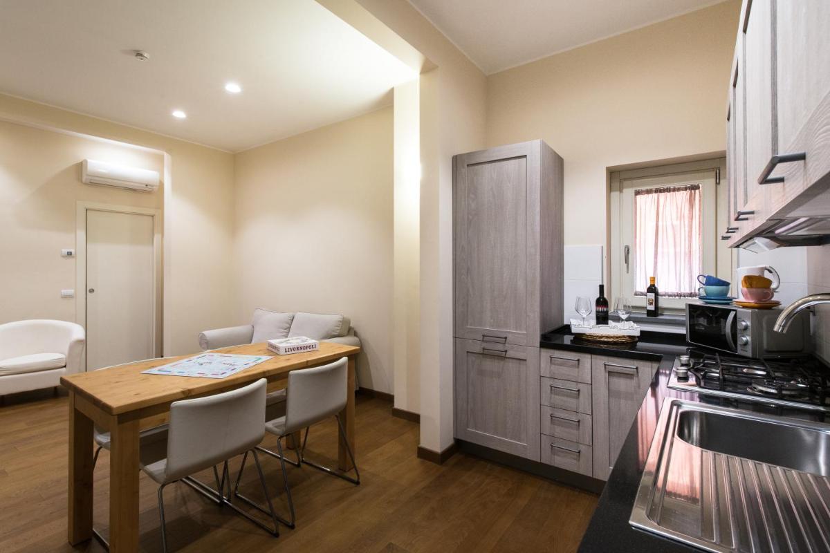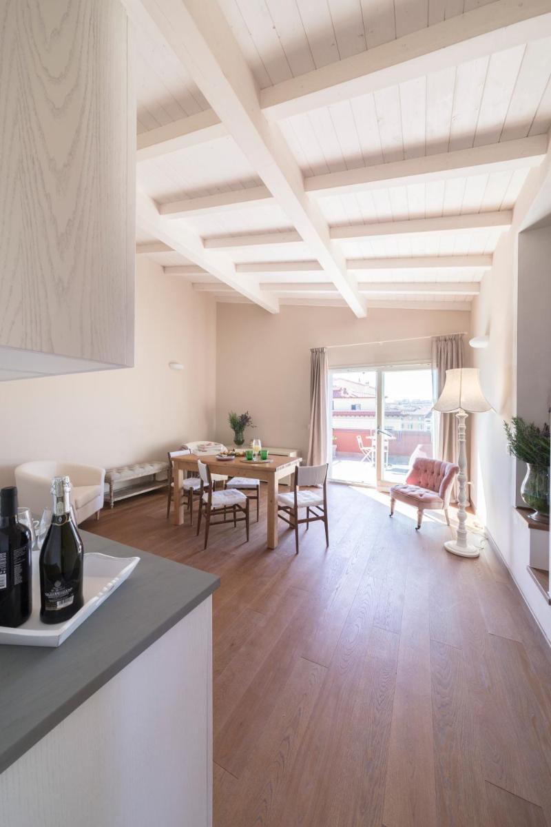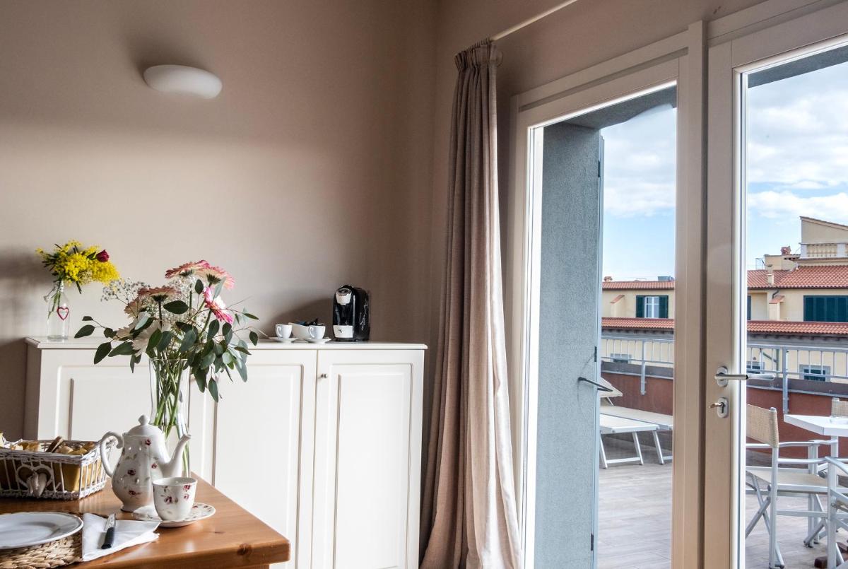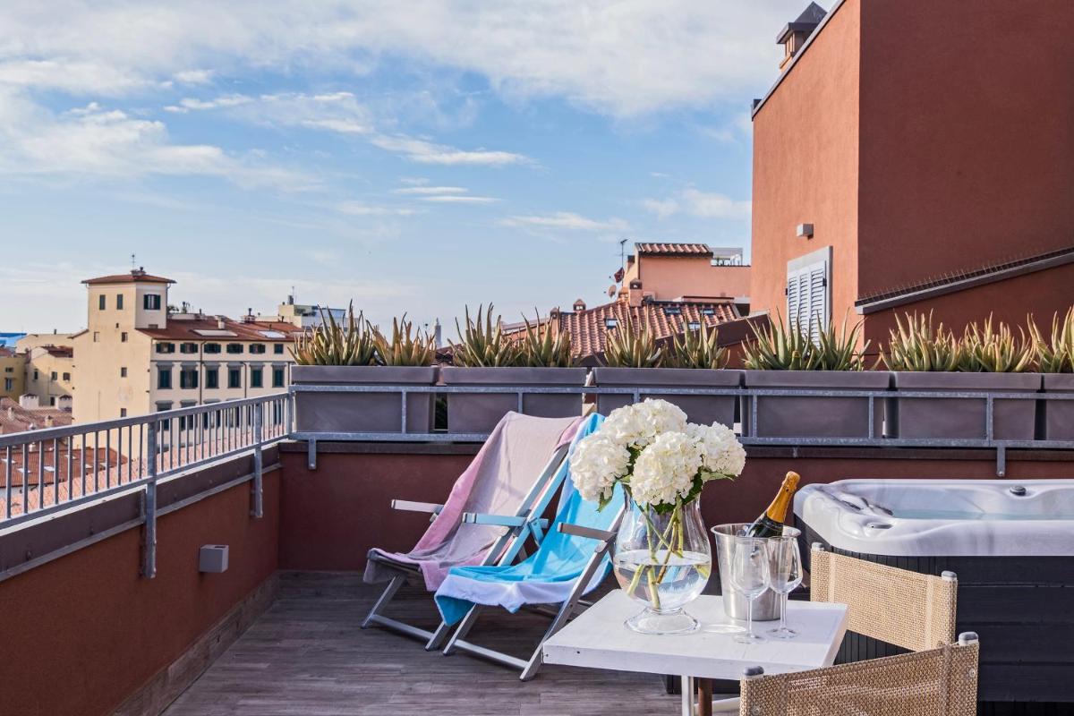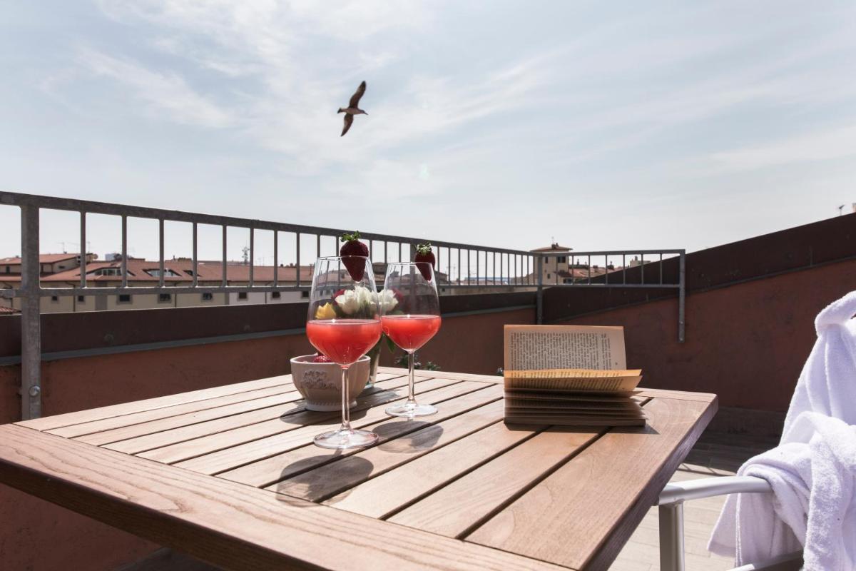 The 17 accommodations are spacious, modern, and comfortably furnished. Many suites and apartments offer generous spaces, with the option of one or two bedrooms and two bathrooms, ideal for families or groups. A touch of luxury is provided by the Suites with Private Hot Tub located on the fifth floor, which feature a private panoramic terrace with a jacuzzi, offering a suggestive view of the canals and Livorno's skyline.