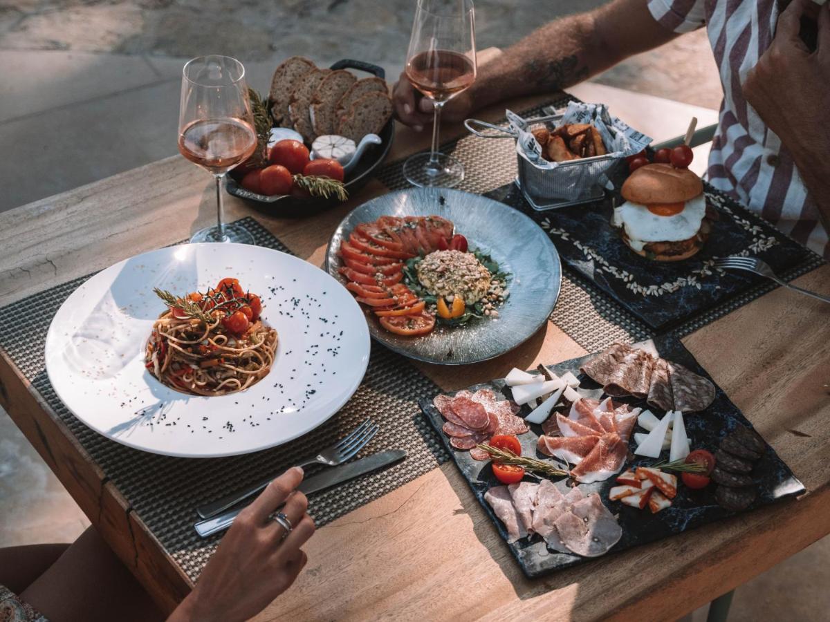 The restaurant offers gourmet cuisine that celebrates the flavors of the island, using local and organic produce. The breakfast, carefully served and rich in artisanal options, is often praised as one of the highlights of the stay. Guests can dine outdoors under the stars, enjoying the serene environment.