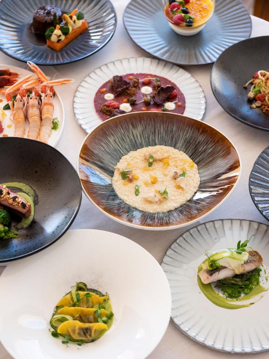 The highlight is the gourmet restaurant "La Terrazza," mentioned in the MICHELIN Guide. Here, regional Venetian and contemporary cuisine is offered in a refined setting, with the option of dining on the magnificent panoramic terrace. The Bar offers evening aperitifs in the elegant Dehor, while for an exclusive experience, the atmospheric 16th-century Grotta di Bacco is available for private romantic dinners by reservation. The rich buffet breakfast includes sweet and savory delicacies and the unmissable Prosecco Asolo DOCG sparkling wine.