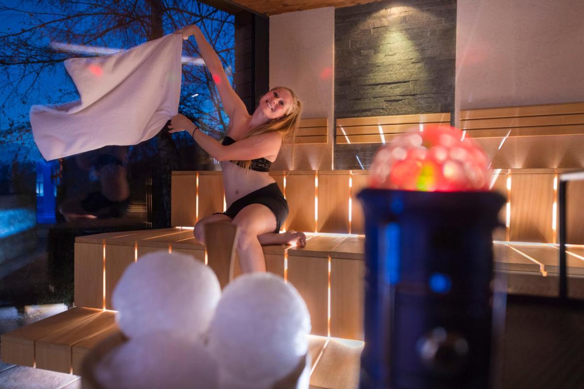 The core of wellness is the Venosta Spa and the “R30” pool area (referring to the 30 km radius) with an unforgettable view. Guests have access to: a heated 17-18 meter Indoor-Outdoor Infinity Pool; an additional Outdoor Pool, and a panoramic hot tub. The sauna world includes a Panoramic Sauna, steam bath, pine wood biosauna, and a natural swimming pond for cooling down. A rich activity program is available, including yoga, aqua aerobics, and the use of a modern fitness room.