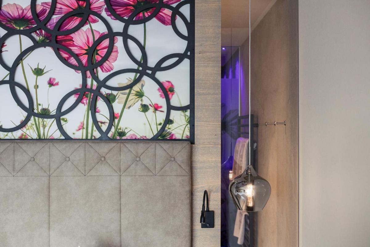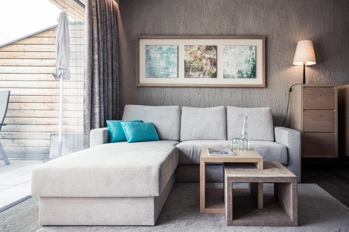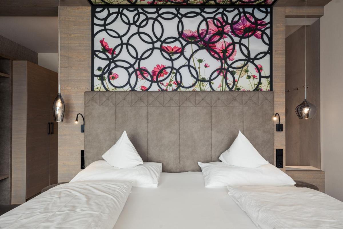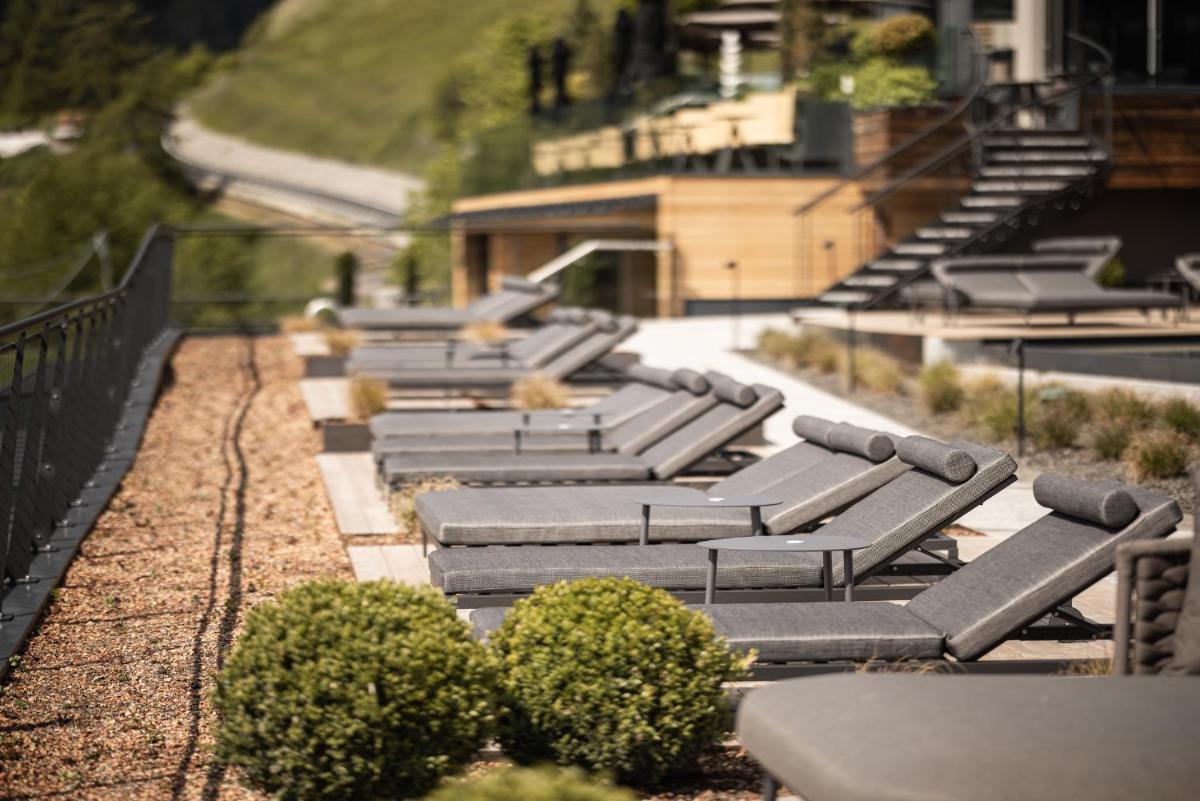 The hotel features 61 Rooms and Suites, many of which are renovated and furnished in a contemporary alpine style with natural materials like pine wood. The accommodations feature a private balcony or terrace with panoramic views of Val Venosta. The most exclusive suites, such as the Sky Suite and the Panoramic Spa Suite, offer a private outdoor hot tub. The luxurious Pool Suite even boasts a private pool on the terrace. All rooms include free WiFi, satellite TV, a minibar, Nespresso coffee machine, and a wellness bag with a bathrobe and slippers.