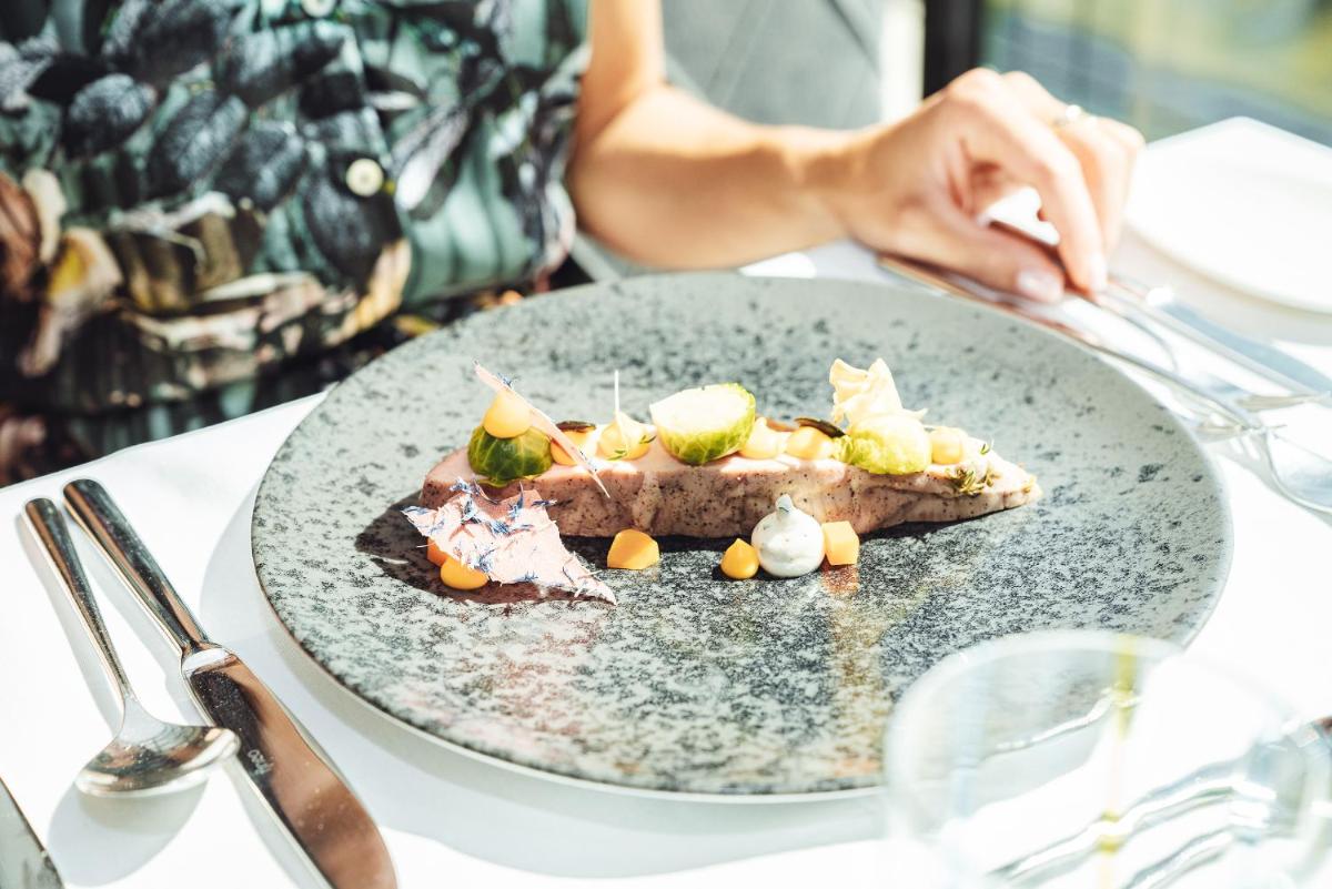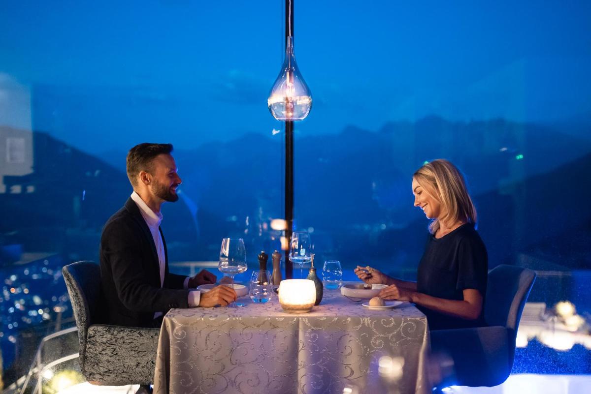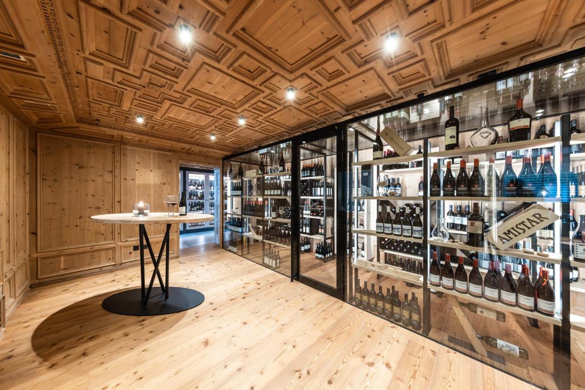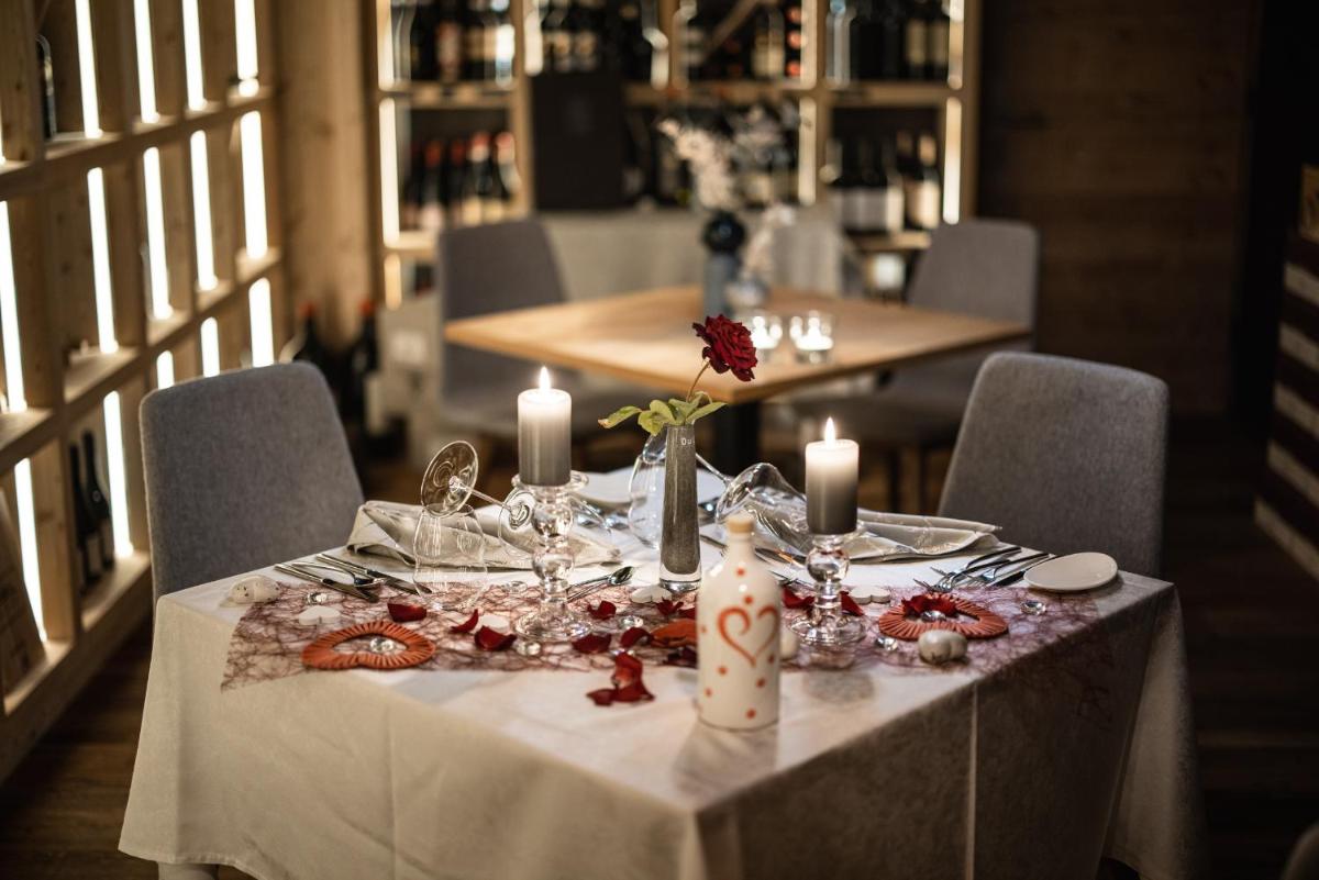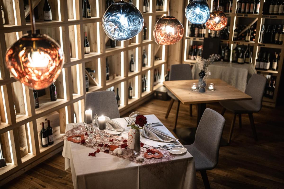 The Panoramic Restaurant offers a renowned Gourmet 3/4 Board included in the rate. This comprises a rich breakfast buffet with regional products, an afternoon buffet of homemade sweets and cakes, and a gourmet dinner with 5-6 courses to choose from, emphasizing Alpine-Mediterranean cuisine and local, Km 0 products. The hotel regularly organizes theme nights, wine tastings with the sommelier, and the famous Kitchen Party.