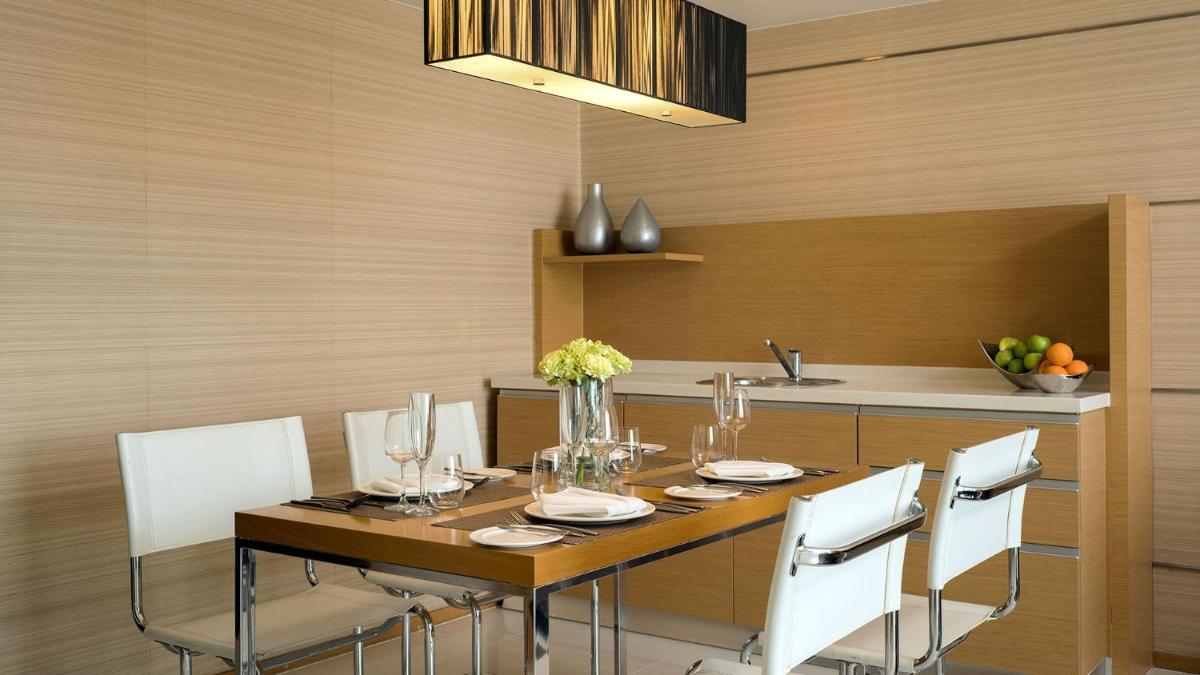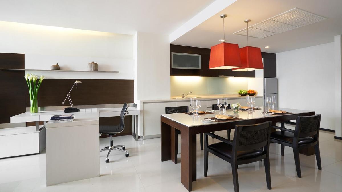 Accommodations feature spacious suites and apartments, designed for extended stays and maximum comfort. The decor is minimalist and sophisticated, with floor-to-ceiling windows offering breathtaking views of the Bangkok skyline, particularly the lights of the financial district. The suites provide a sense of residential luxury in the heart of the metropolis.