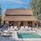 The villas are inspired by safari lodge design, featuring thatched roofs, natural wood, and elegant, spacious interiors. Each villa is a private retreat with a private pool and a large sun deck, ensuring privacy and comfort. Panoramic windows offer an uninterrupted view of the savannah, allowing guests to observe gazelles and other wild animals in their natural habitat.