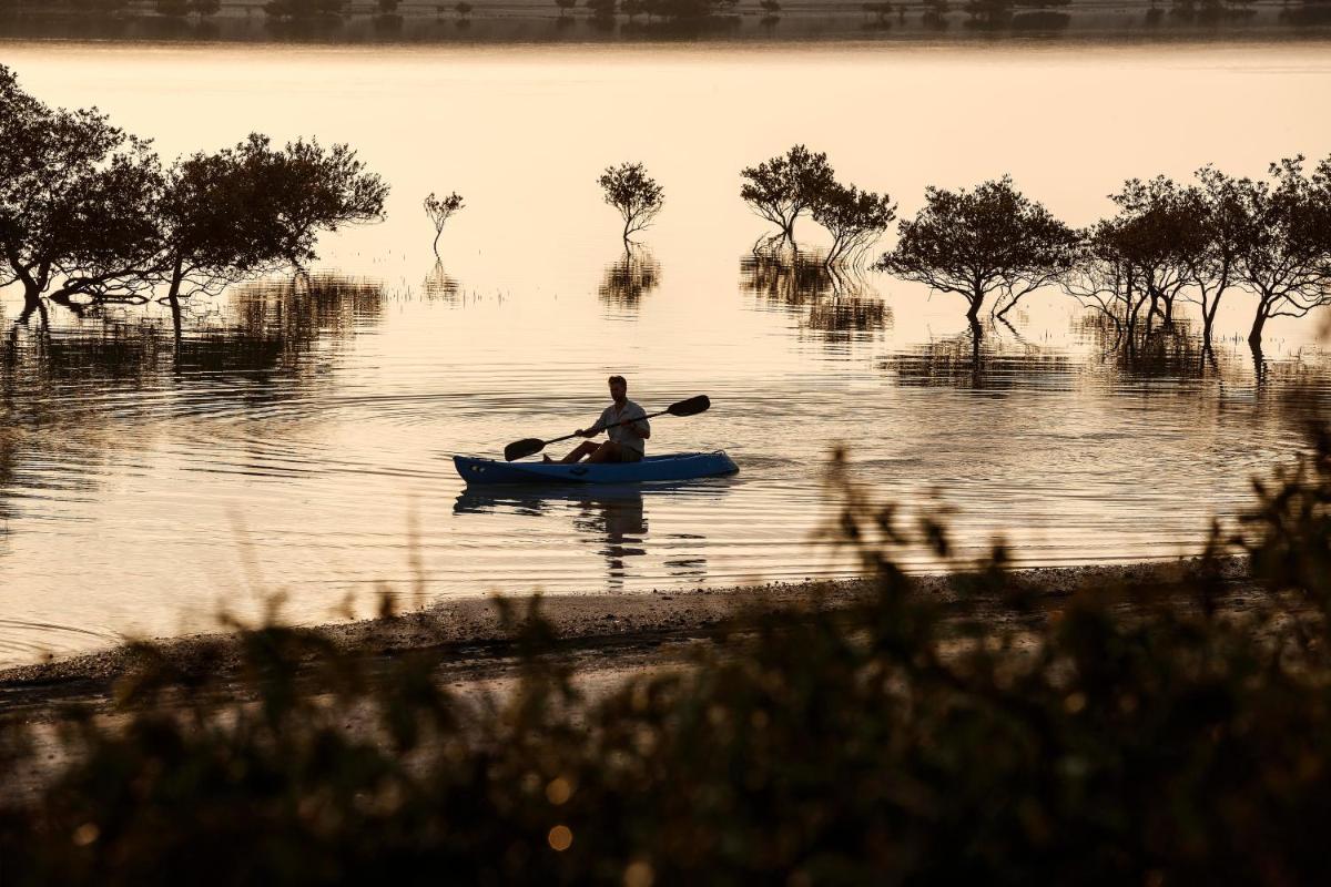 The main attraction is the safari experience in the reserve, home to thousands of free-roaming animals, including the Arabian oryx, giraffes, and gazelles. Guests can participate in guided 4x4 safaris, walking nature tours, and kayaking sessions through the mangroves, offering a luxurious and engaging ecotourism experience.