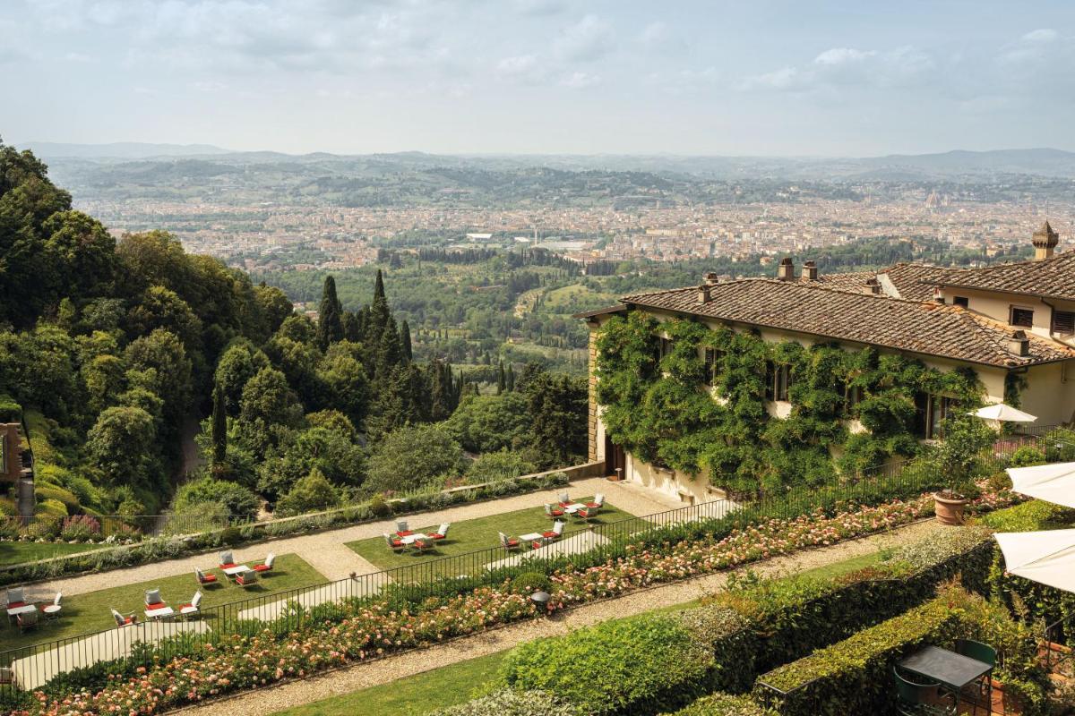 The gastronomic heart of the Hotel is the La Loggia Restaurant, situated beneath the iconic arched loggia, which offers sunset dining with an unrivaled view of the Florence skyline and serves refined Tuscan and Italian dishes. The property is famous for its heated outdoor swimming pool, located on a grassy plateau with a spectacular view of the surrounding countryside. A further new feature is the Guerlain Spa, offering luxury treatments in a serene setting. The terraced gardens are a botanical paradise that includes a monastic garden, woodlands, and hidden nooks ideal for relaxation. There is also a renowned Cooking School and a panoramic fitness center.