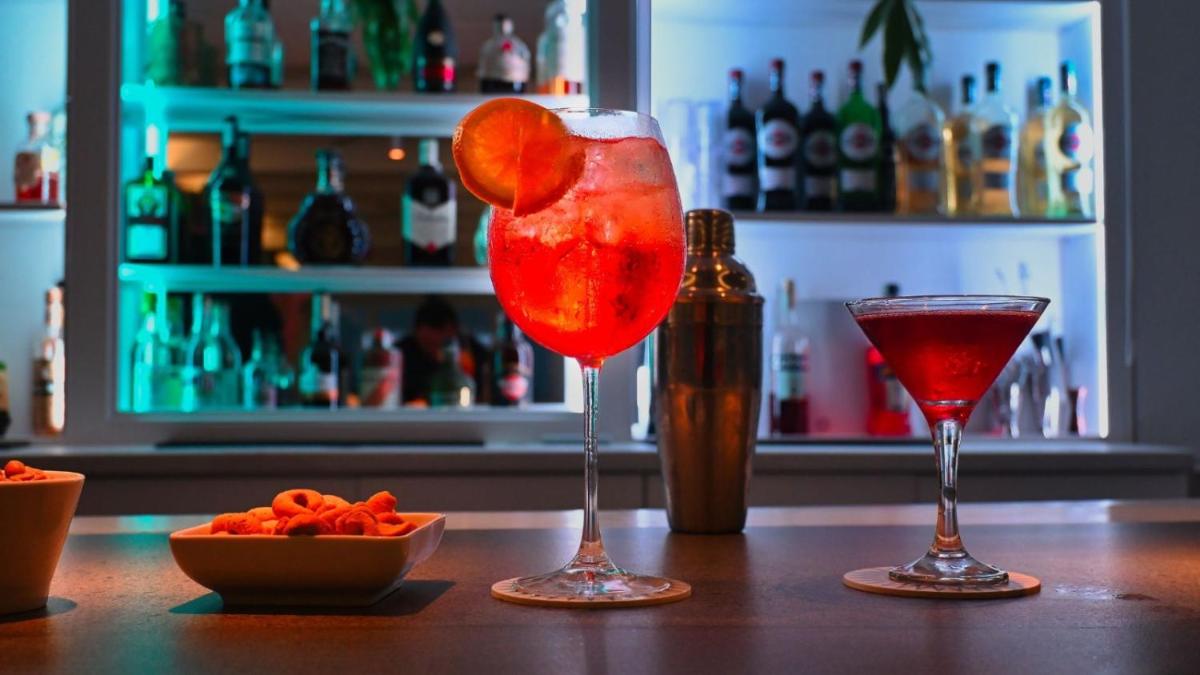 Breakfast is served buffet-style on the panoramic terrace, with sweet and savory options including gluten-free items. The poolside restaurant offers fresh Mediterranean dishes and the bar serves cocktails and aperitifs at sunset.