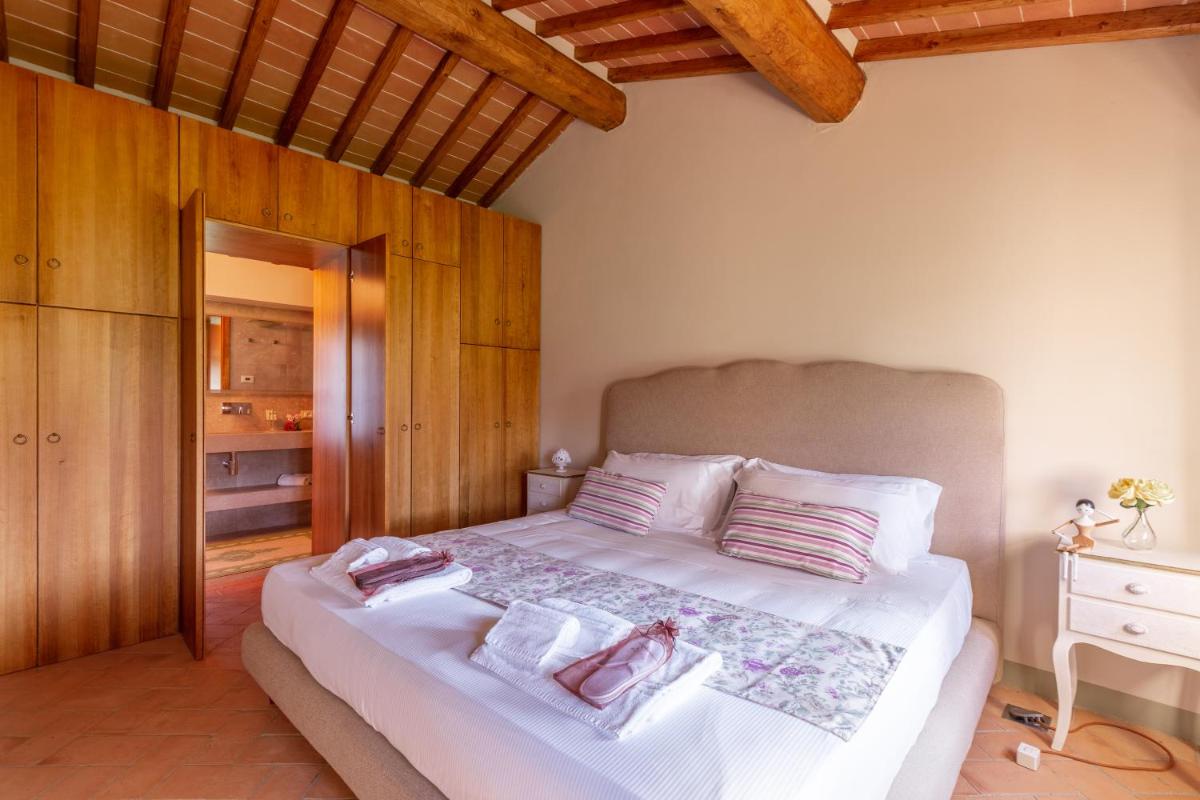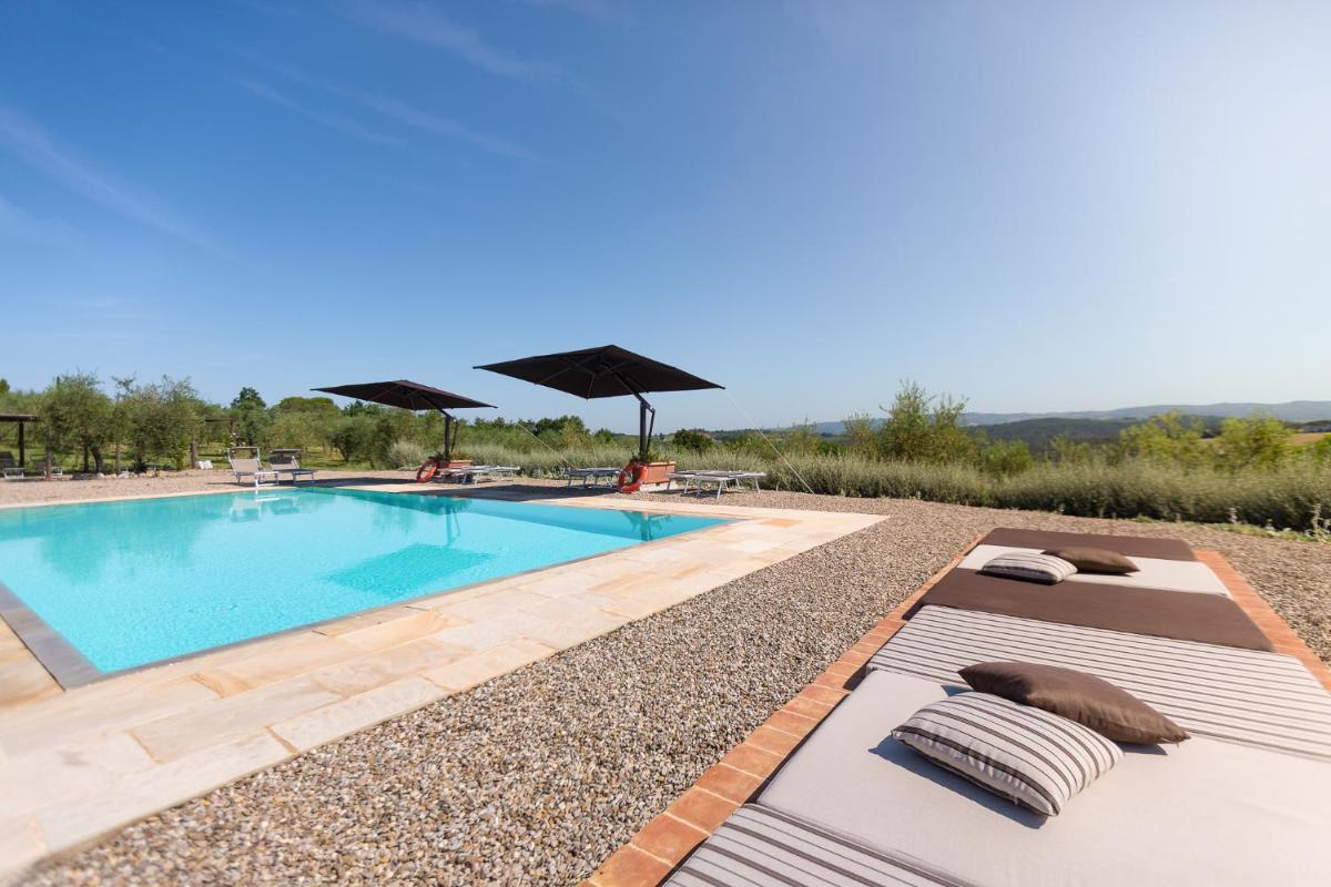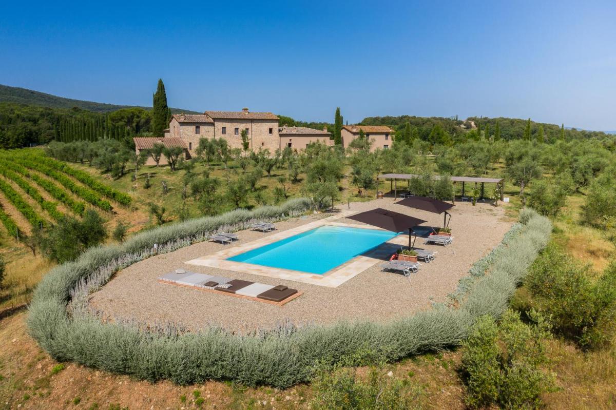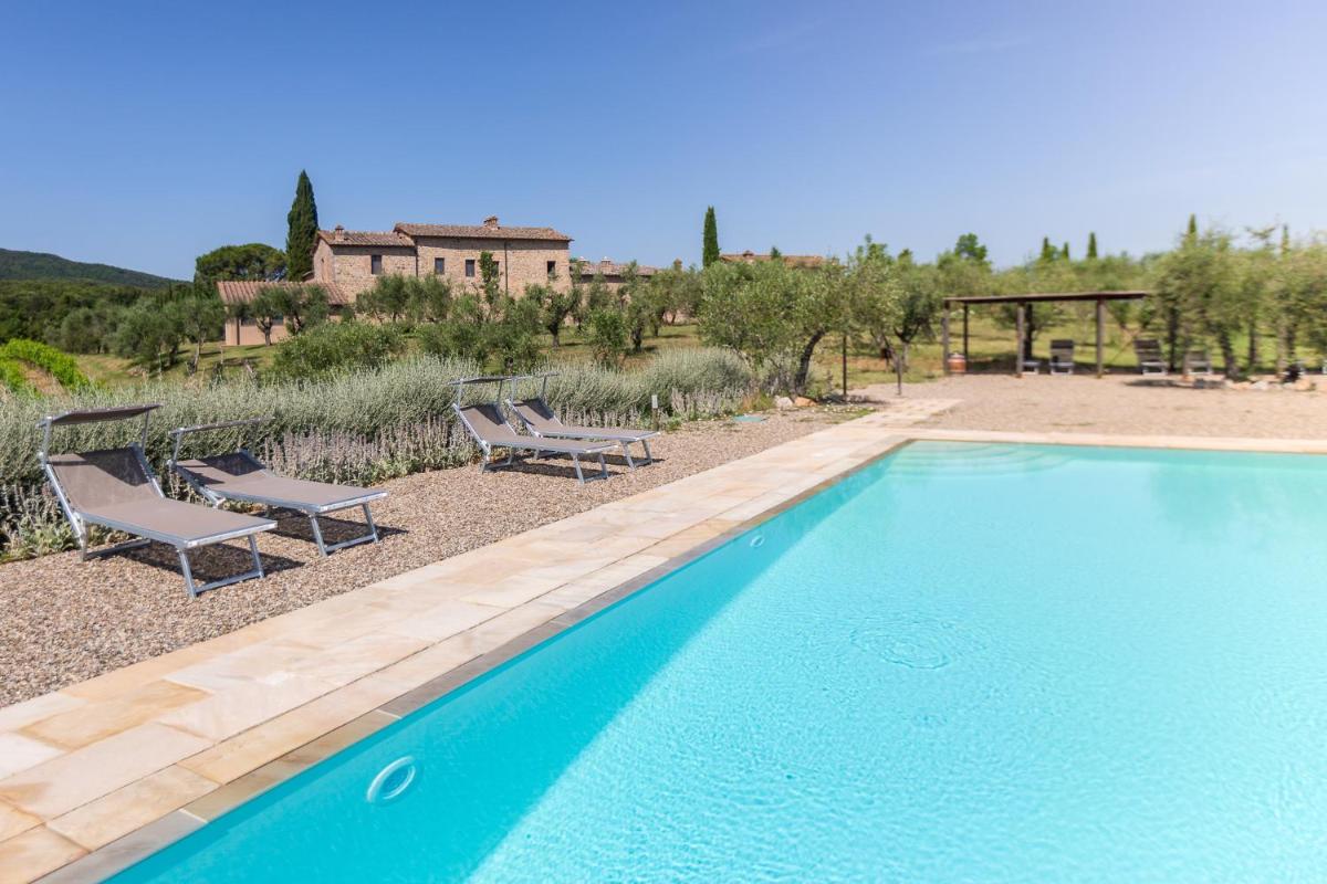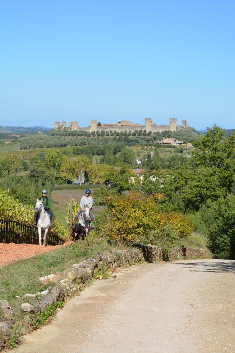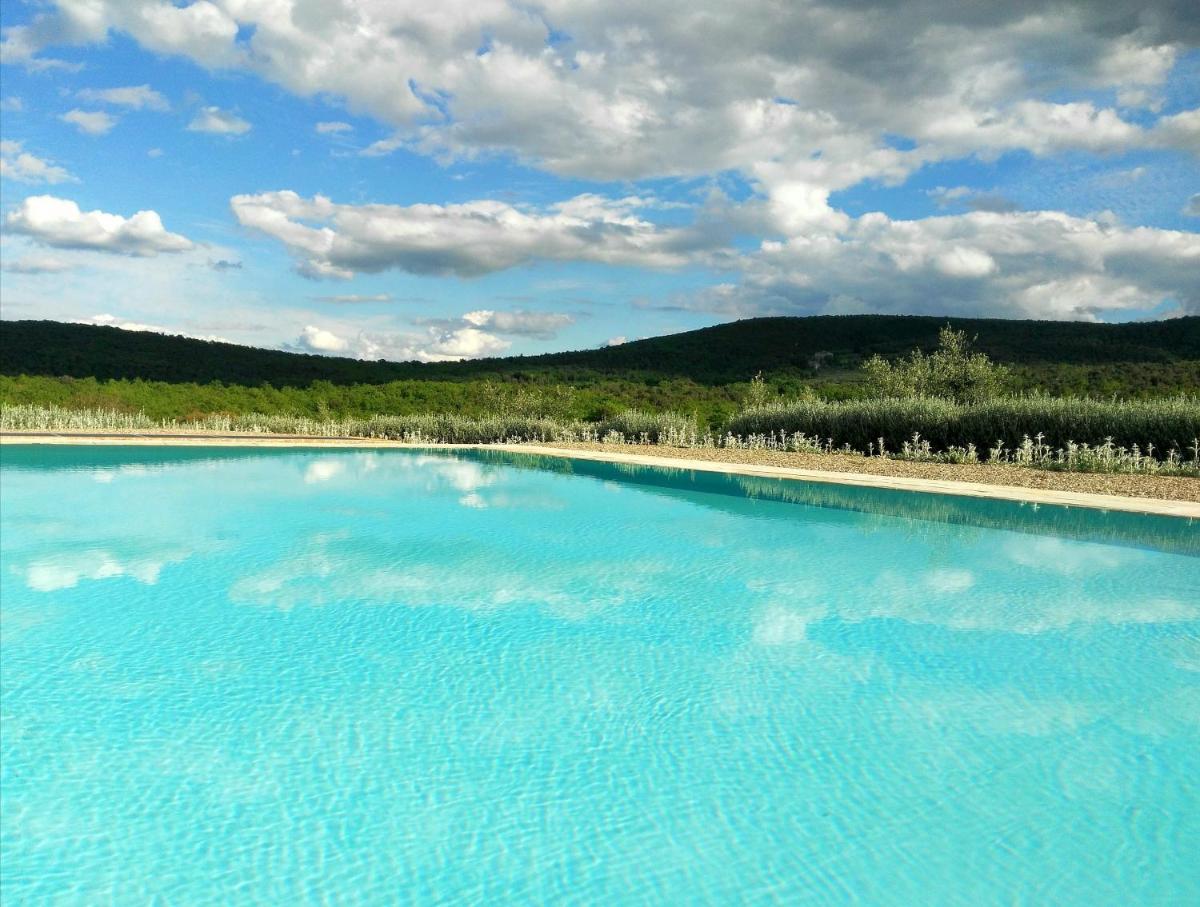 Guests have access to a magnificent outdoor infinity pool, surrounded by an equipped sunbathing area, from which they can admire the silhouette of Monteriggioni Castle. The property is nestled in a well-maintained garden that invites relaxation. The farm stay is ideal for those seeking an active holiday, offering free bicycle rental, hiking trails, and the possibility of arranging massages and wellness treatments on site.