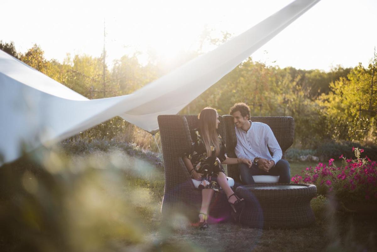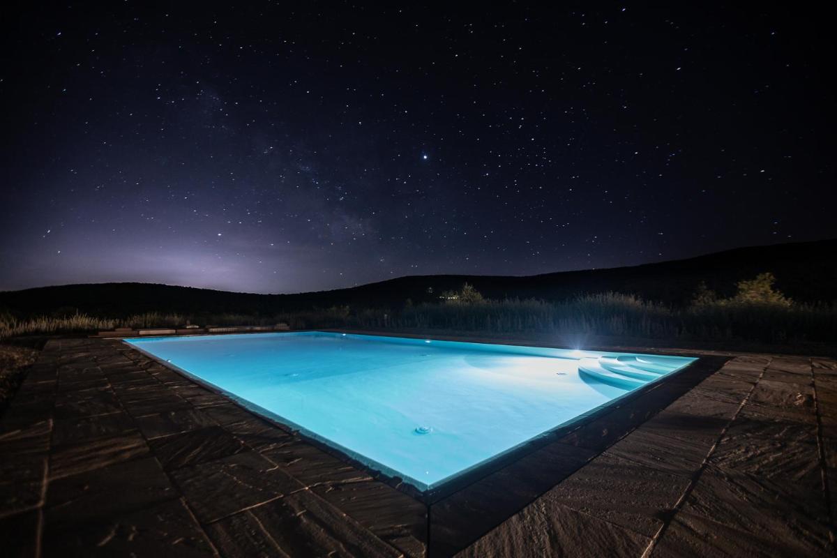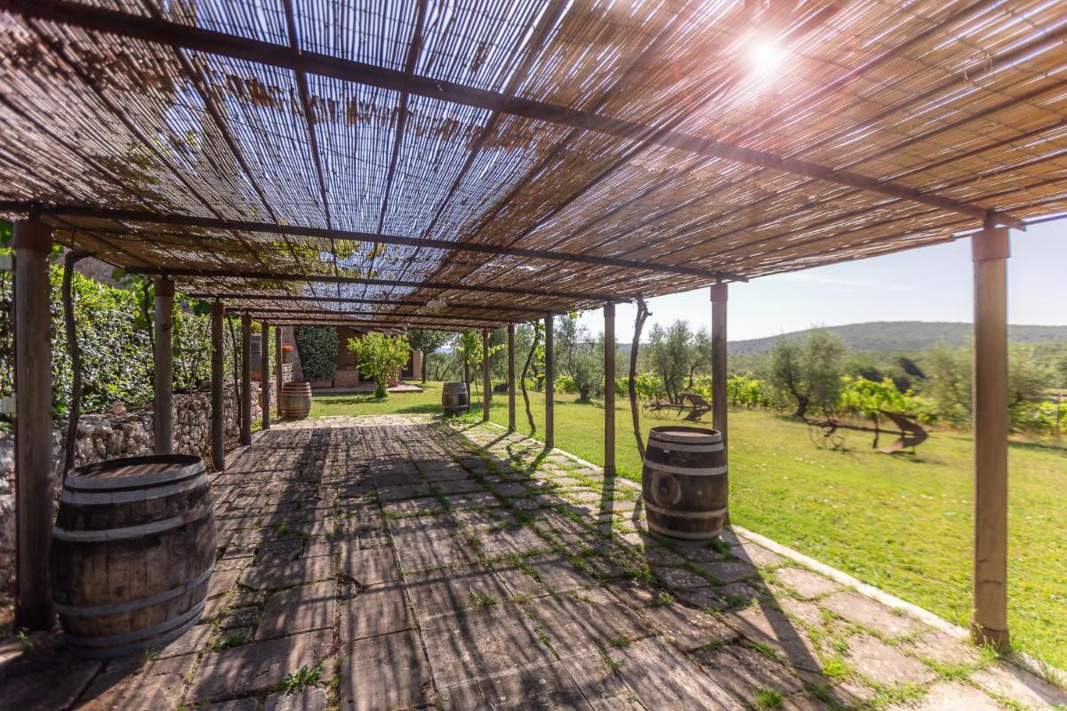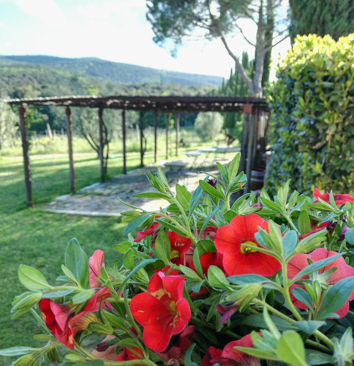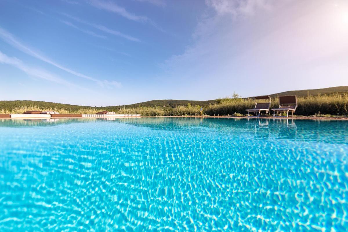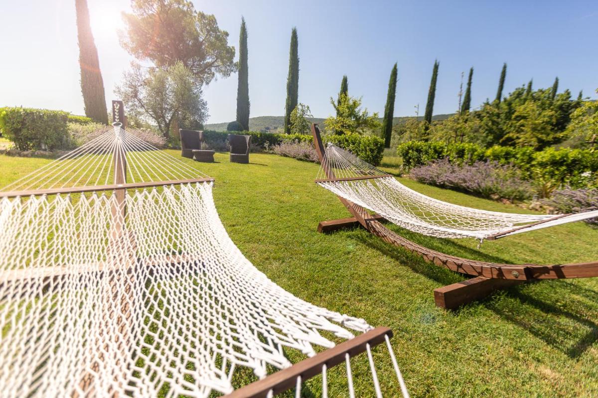 Guests have access to a magnificent outdoor infinity pool, surrounded by an equipped sunbathing area, from which they can admire the silhouette of Monteriggioni Castle. The property is nestled in a well-maintained garden that invites relaxation. The farm stay is ideal for those seeking an active holiday, offering free bicycle rental, hiking trails, and the possibility of arranging massages and wellness treatments on site.
