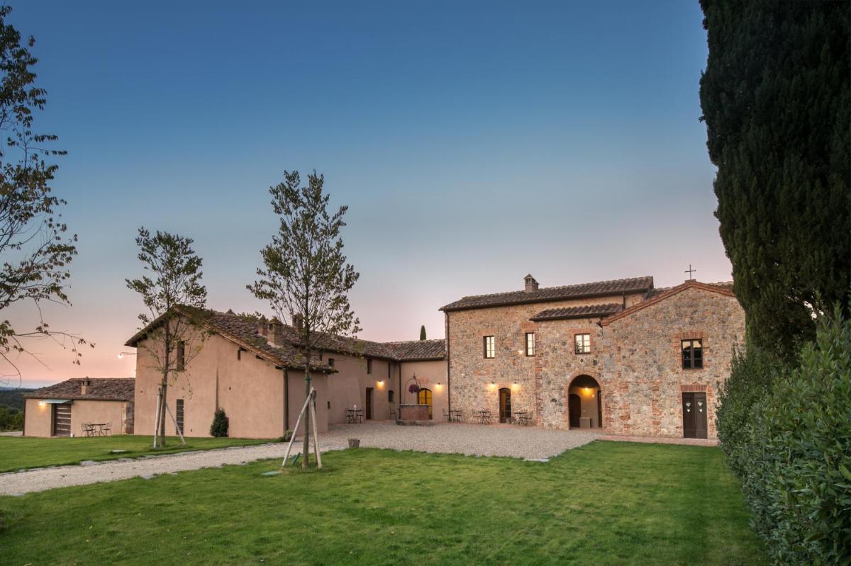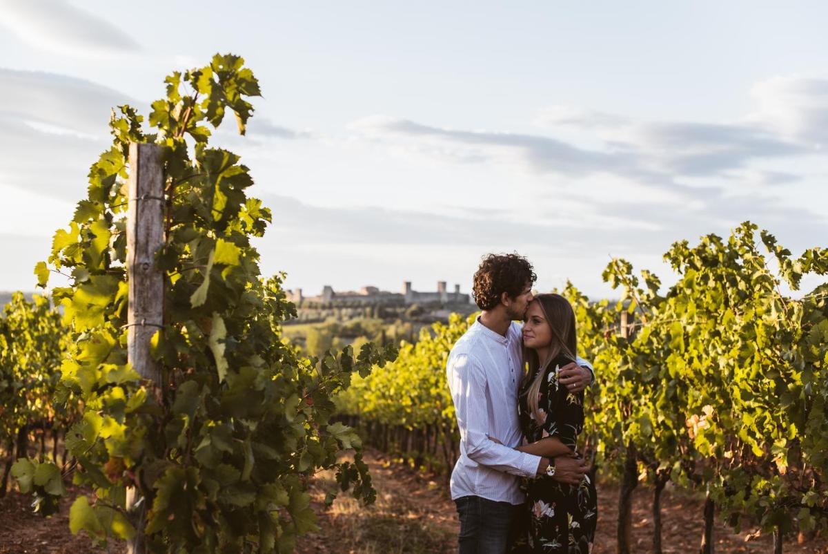 The Borgo dé Brandi is a charming farm stay and villa resort converted from an ancient complex (known in the Middle Ages as "La Caminata"), situated in the heart of the Sienese Chianti, about 1 km from the famous Monteriggioni Castle. Immersed among vineyards and olive groves, it offers an oasis of peace and tranquility with spectacular and unparalleled views of the medieval walled city.
