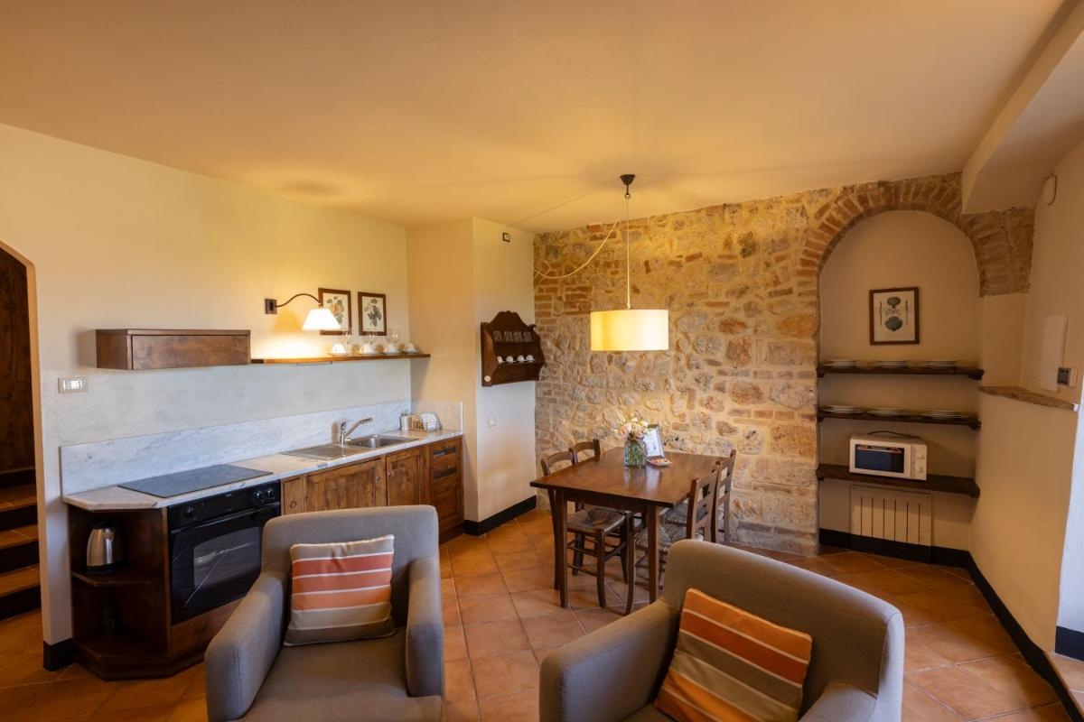 The Borgo offers various types of accommodation, including apartments and suites, all furnished in typical Tuscan style with exposed beams, terracotta floors, and antique furniture. The accommodations feature a sitting area, dining area, and private bathroom with complimentary toiletries. Some units also boast a private terrace or patio, ideal for enjoying the surrounding countryside. All accommodations include: free WiFi and an equipped kitchenette (in the apartments).