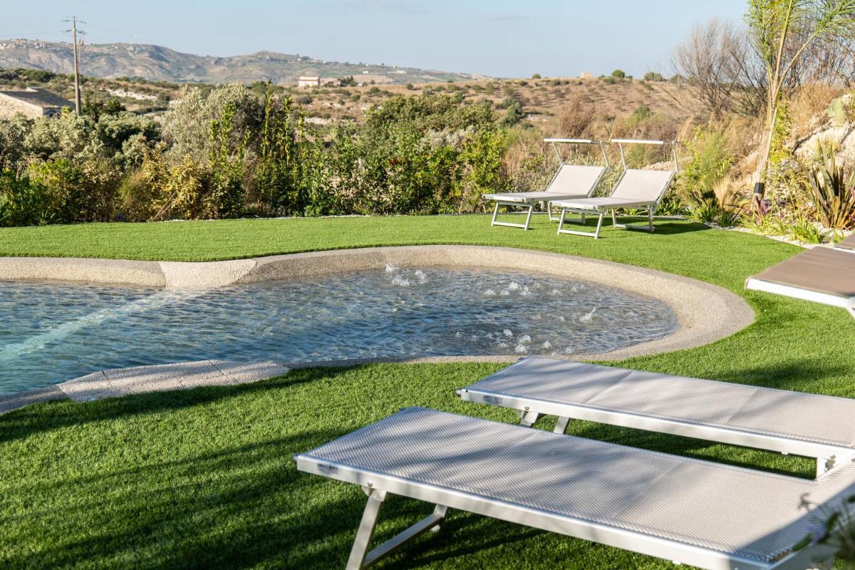 Set among olive trees, the seasonal outdoor pool provides a tranquil retreat. Multiple seating areas, including hammocks and terraces, invite guests to relax under the Sicilian sun.