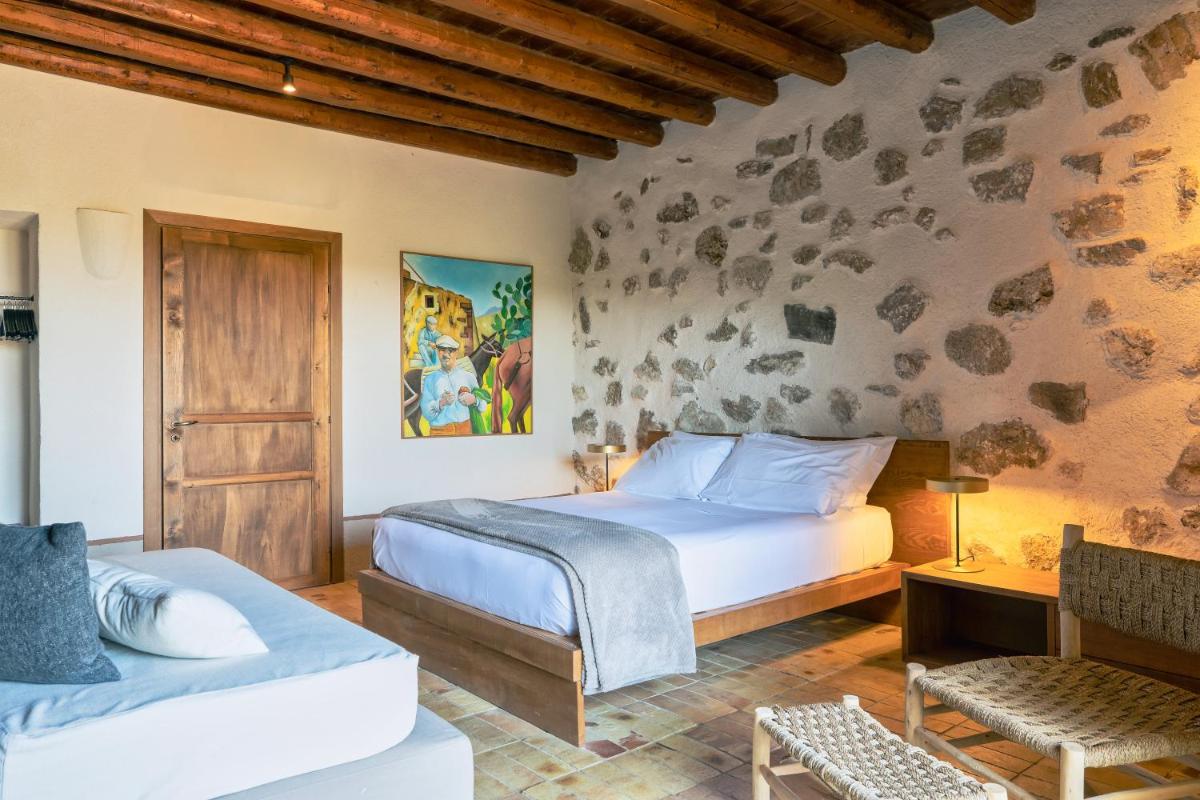 The eight rooms combine thick stone walls and high ceilings to create invitingly cool interiors. Each room is air-conditioned, has a private bathroom, satellite TV, minibar, and a safe. Guests frequently note the thoughtful design and attention to detail.